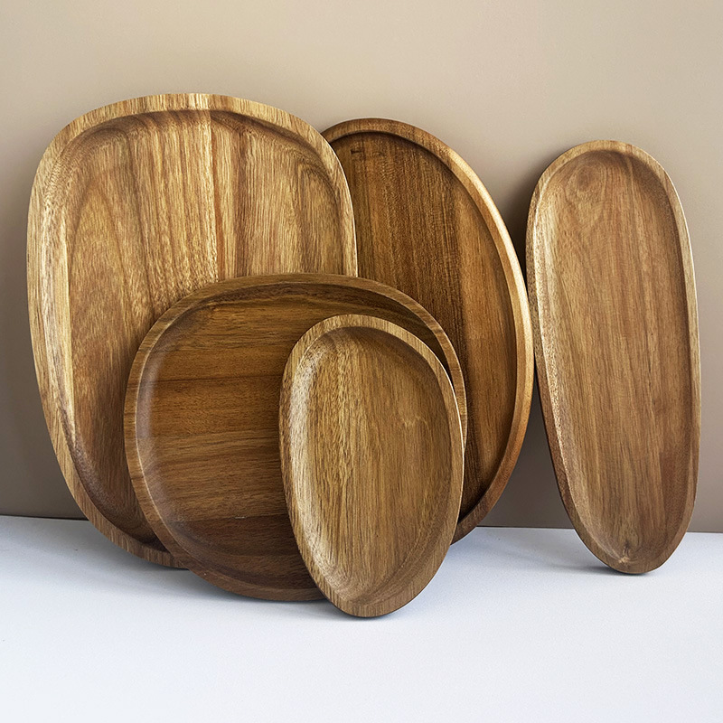 국경 간 단단한 나무 식사 트레이 아카시아 나무 차 트레이 차 세트 나무 트레이 홈 디저트 트레이 직사각형 스톨 대형 트레이