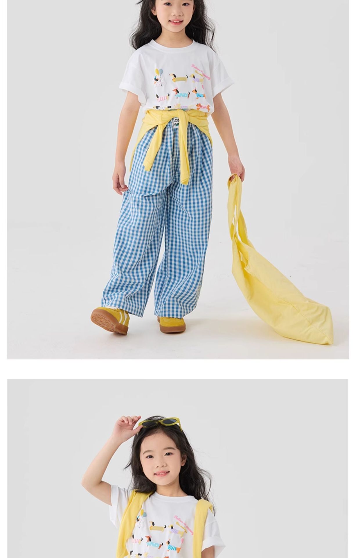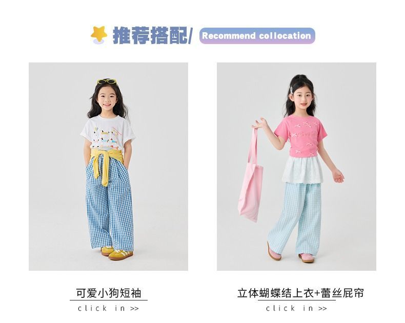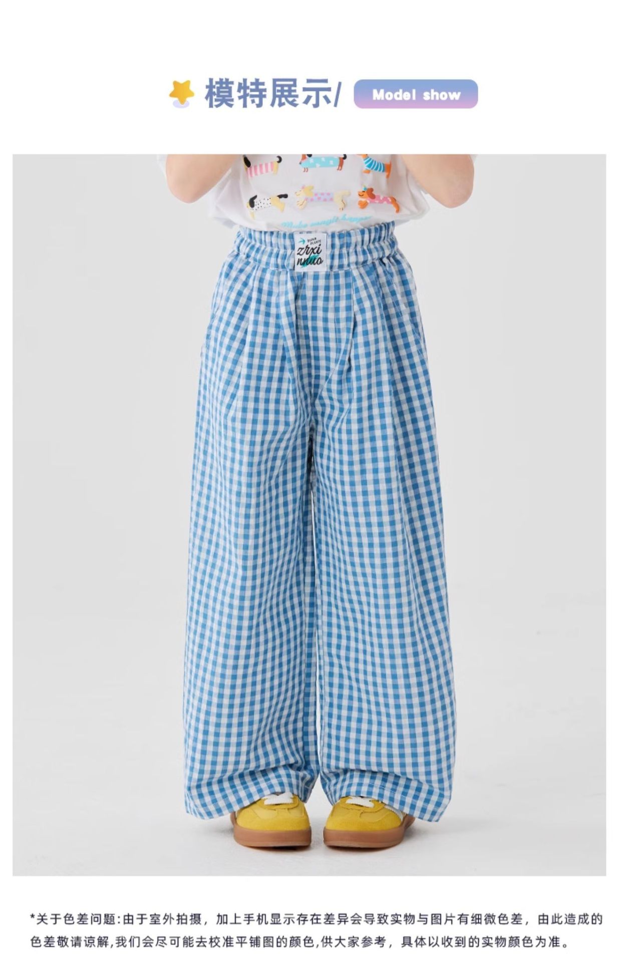 여아 체크무늬 바지 와이드 팬츠 2025 신상 아동용 블루 팬츠 패셔너블 캐주얼 스트레이트 체크무늬 팬츠 트렌디스토어 가기