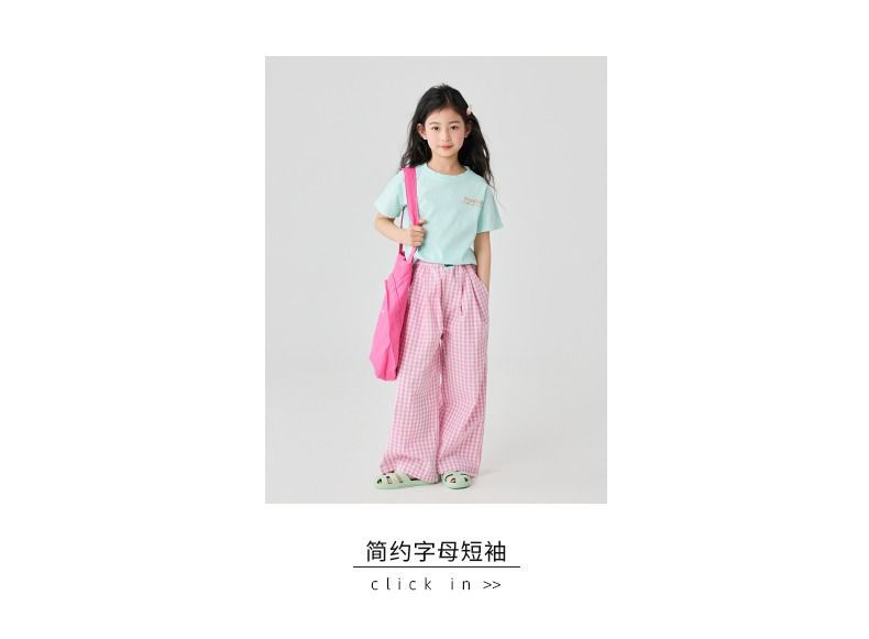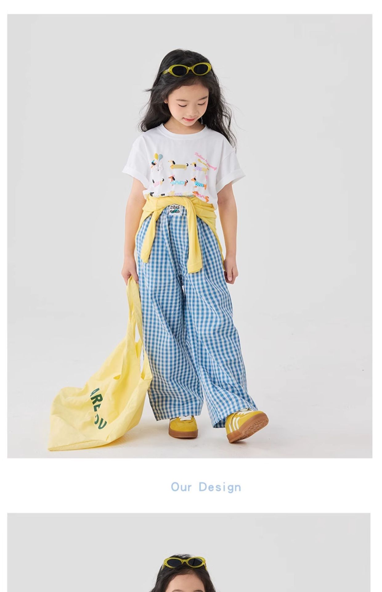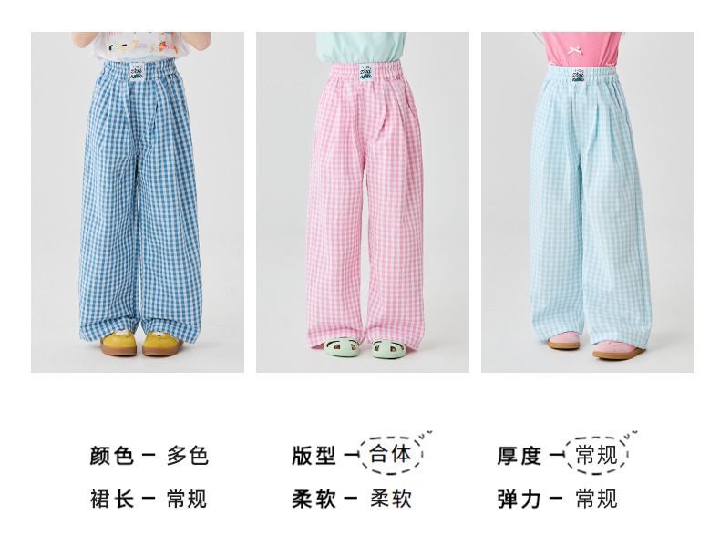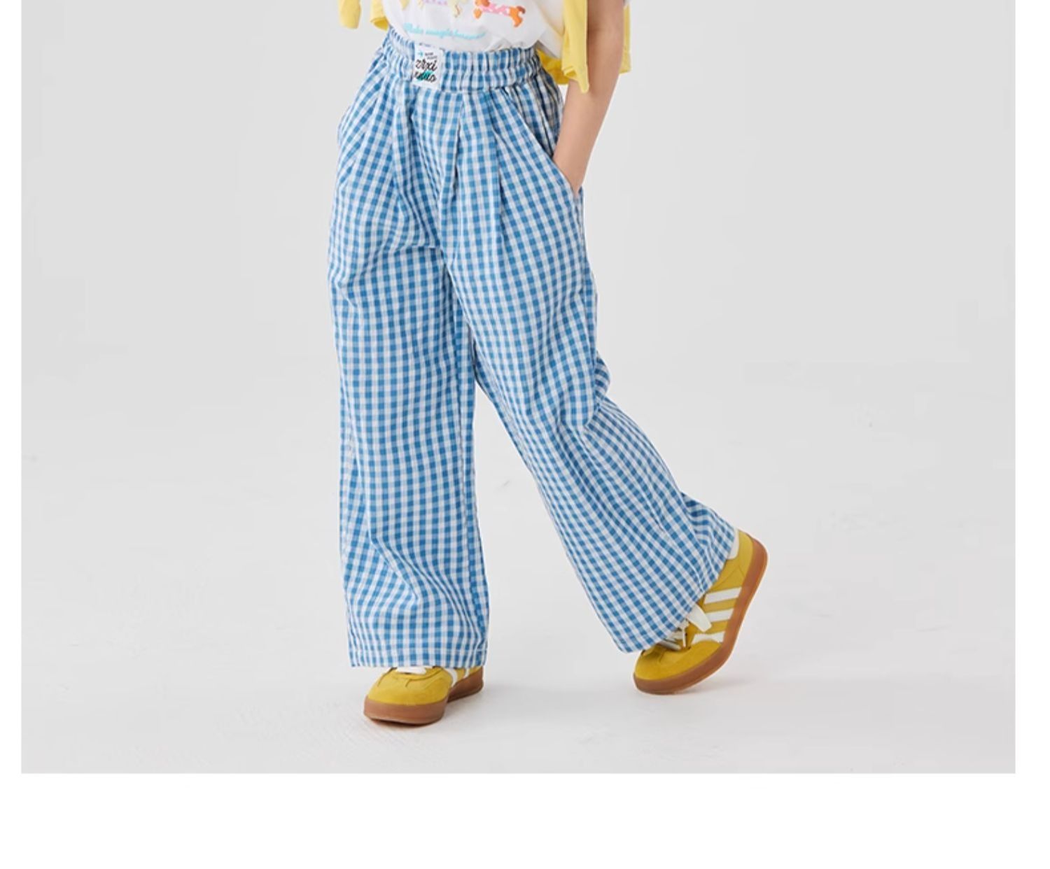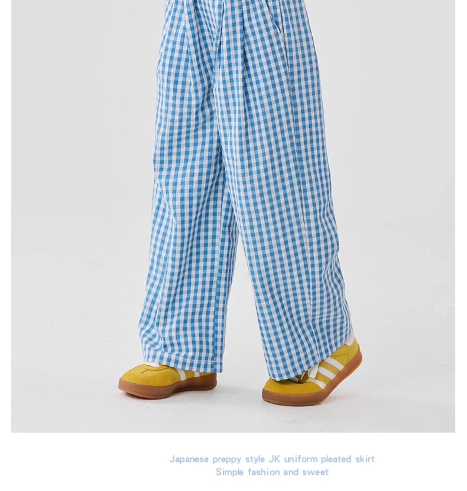 여아 체크무늬 바지 와이드 팬츠 2025 신상 아동용 블루 팬츠 패셔너블 캐주얼 스트레이트 체크무늬 팬츠 트렌디
