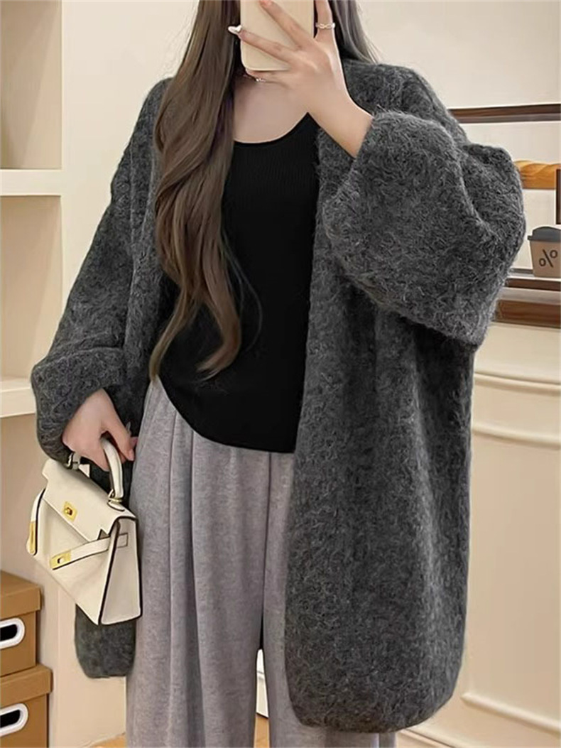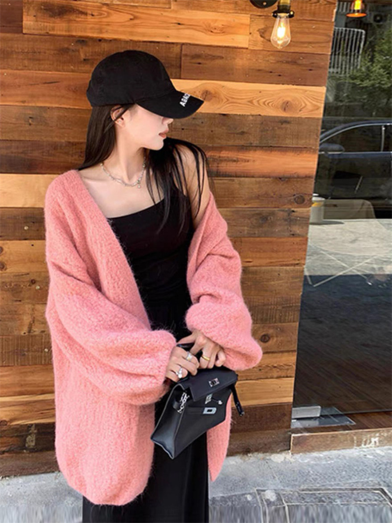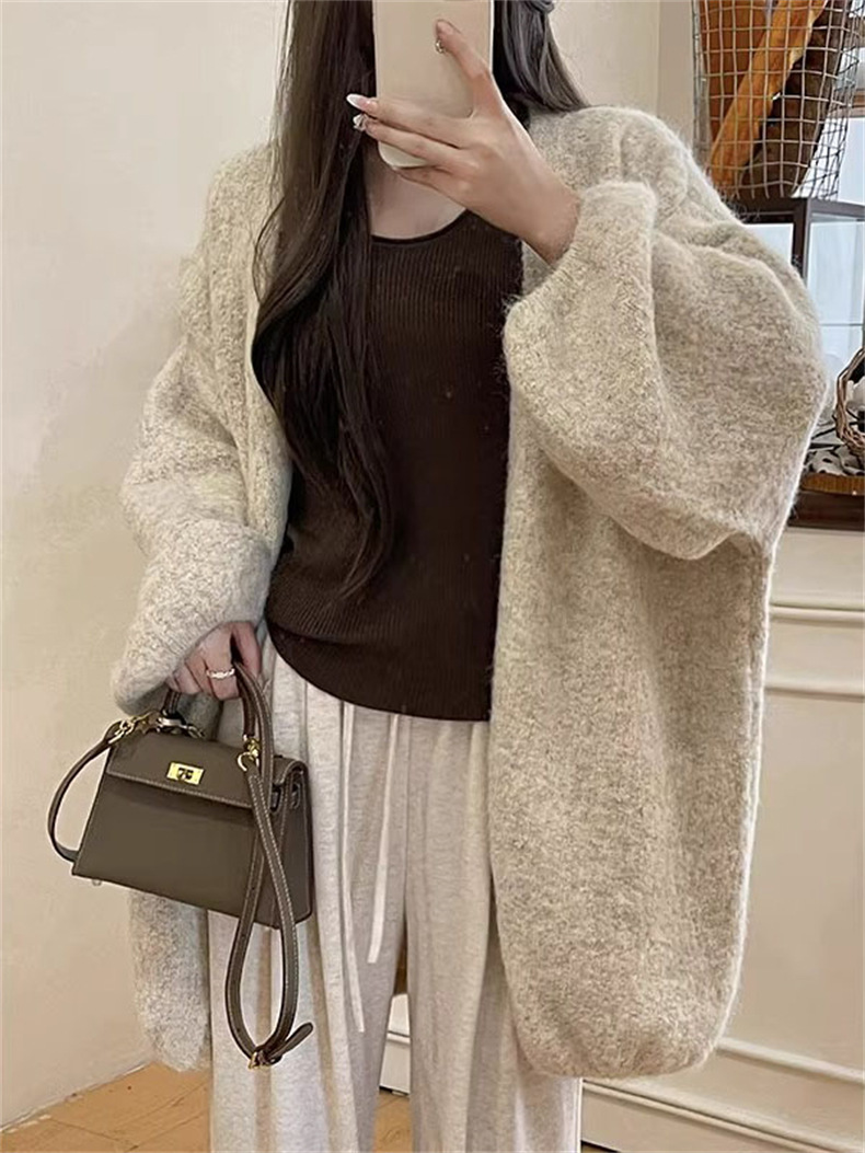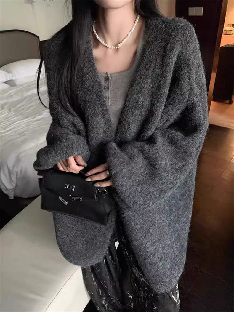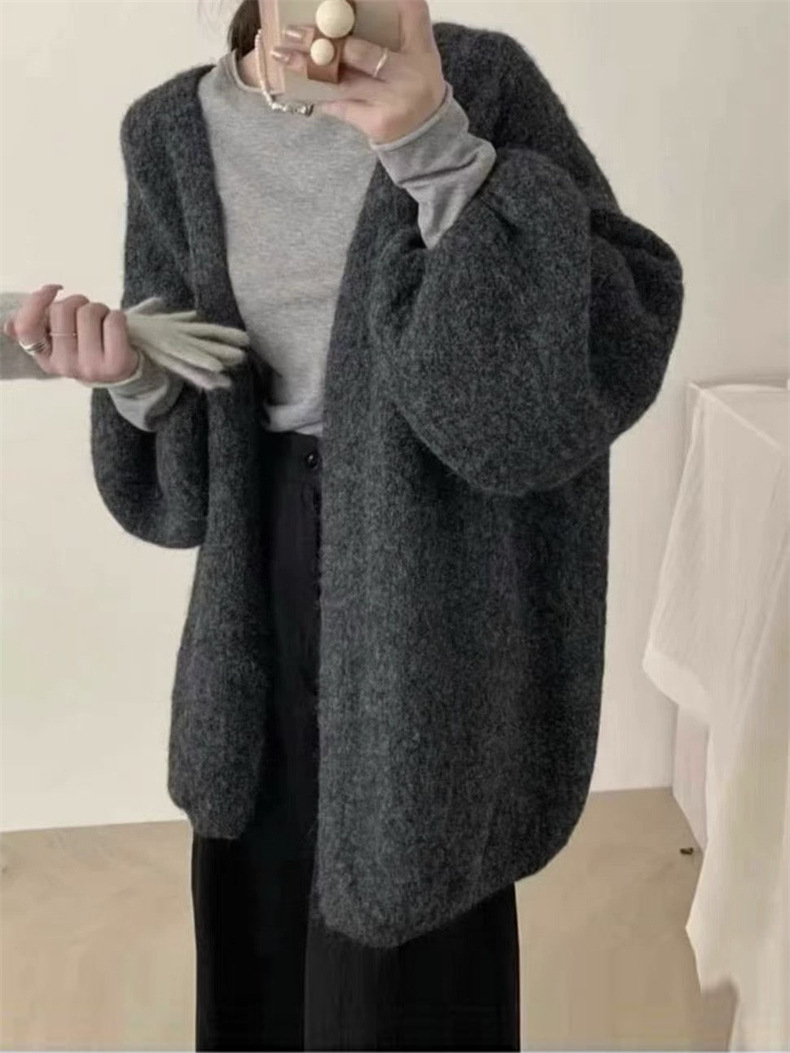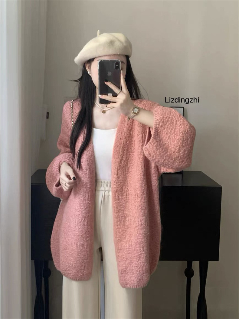 부드럽고 편안한 한국 스타일의 여유로운 분위기의 스웨터 재킷 여성용 가을 겨울 루즈핏 대형 사이즈 고급스러운 니트 가디건 여성용스토어 가기