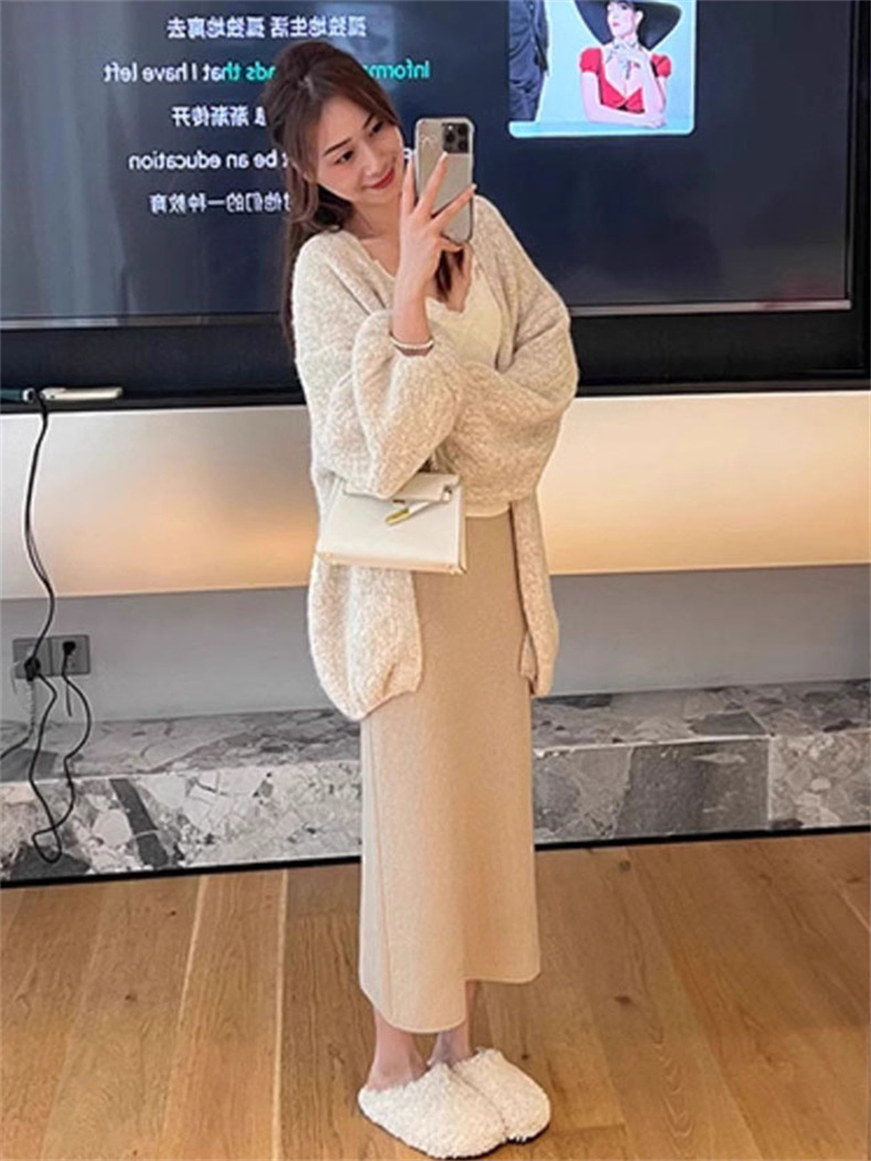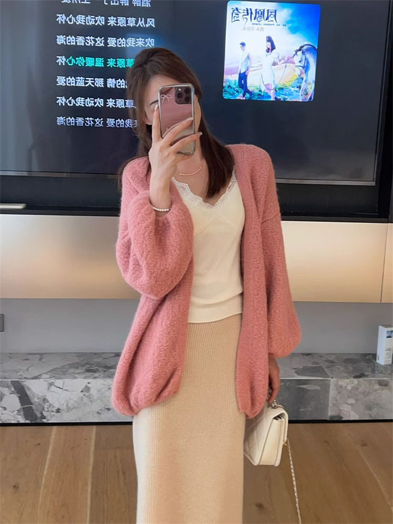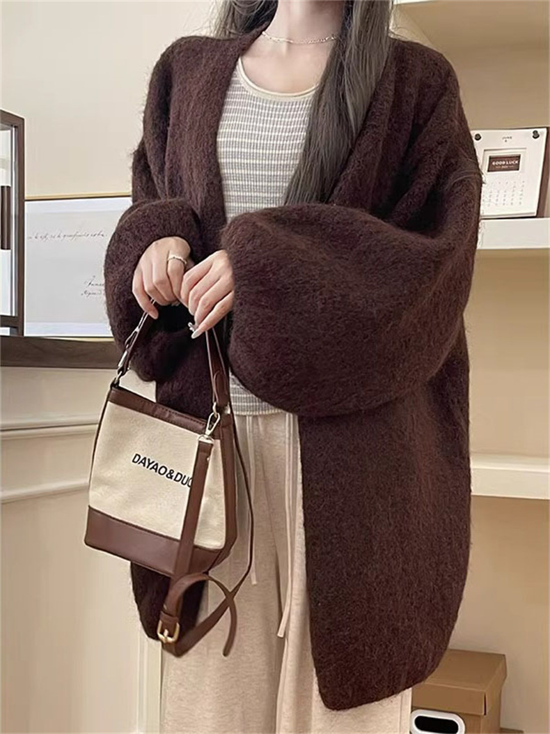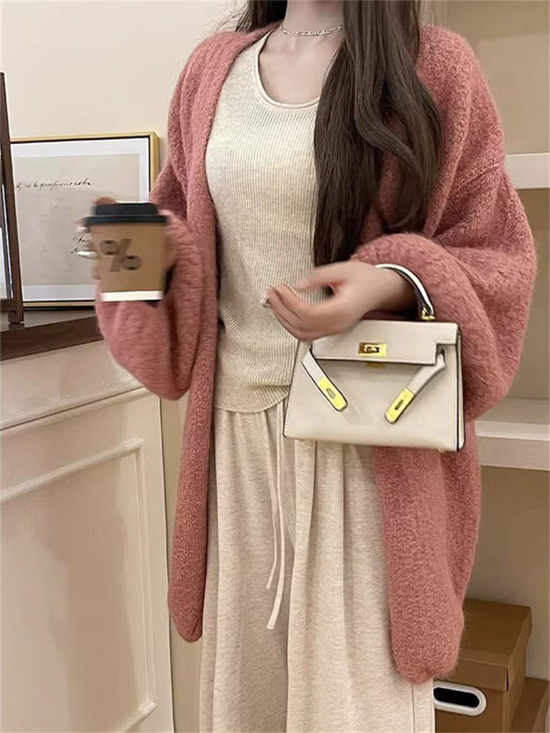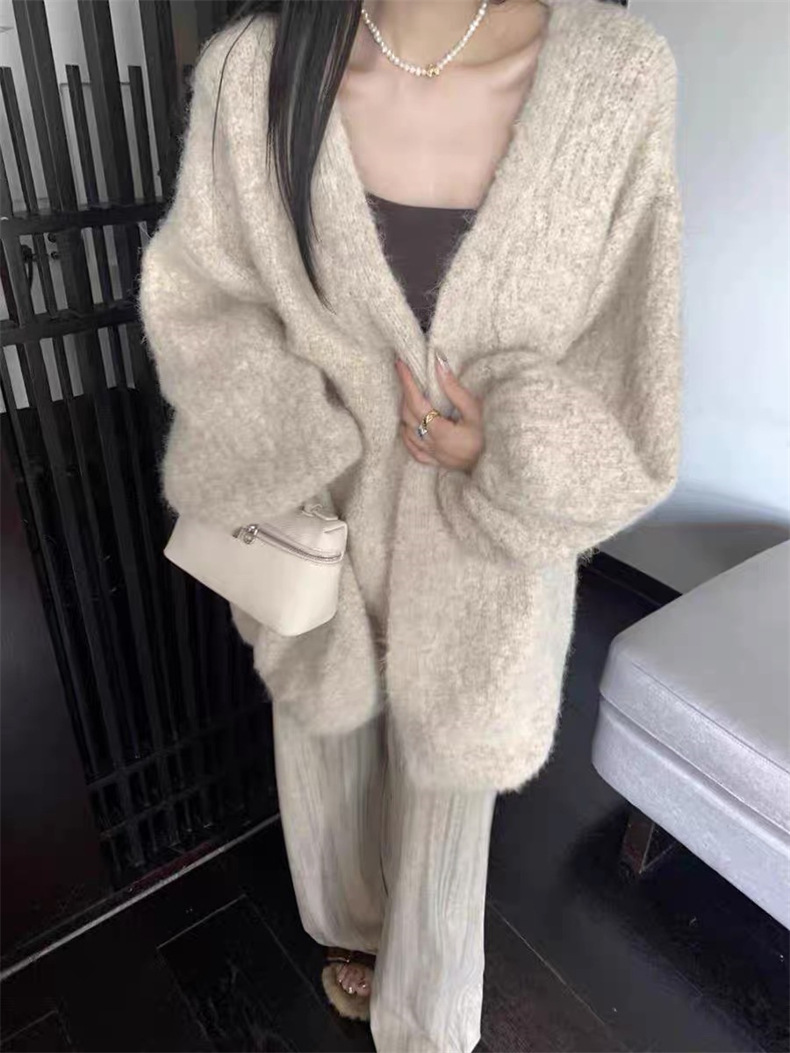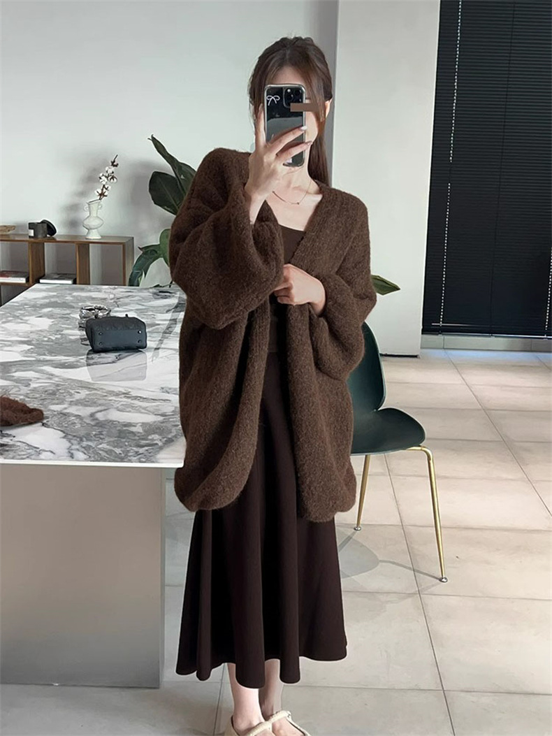 부드럽고 편안한 한국 스타일의 여유로운 분위기의 스웨터 재킷 여성용 가을 겨울 루즈핏 대형 사이즈 고급스러운 니트 가디건 여성용스토어 가기