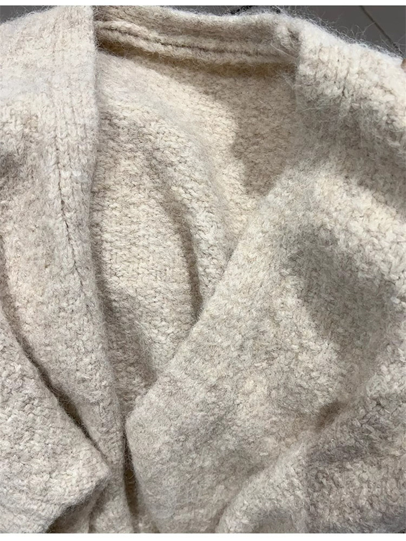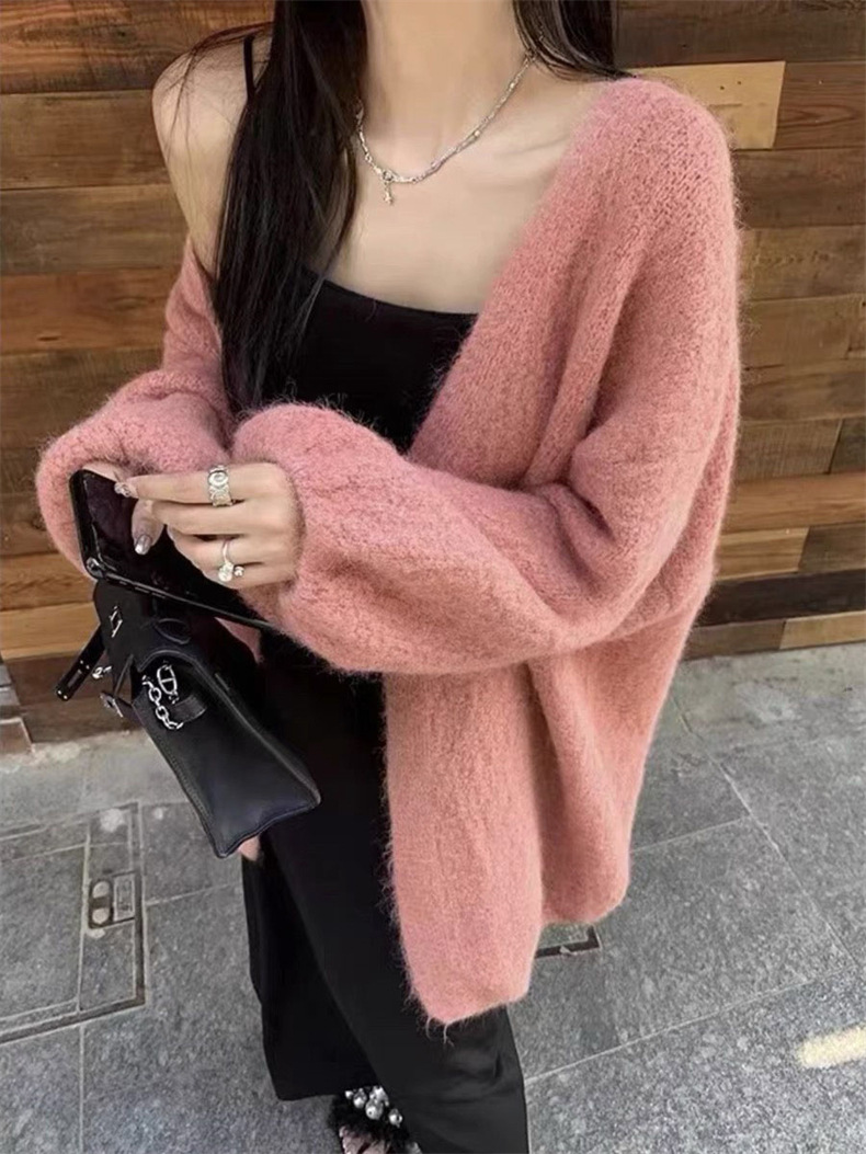 부드럽고 편안한 한국 스타일의 여유로운 분위기의 스웨터 재킷 여성용 가을 겨울 루즈핏 대형 사이즈 고급스러운 니트 가디건 여성용