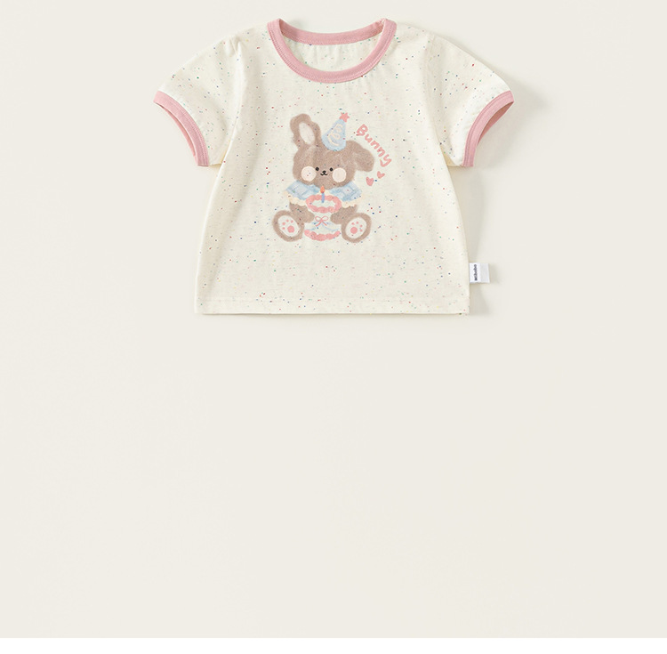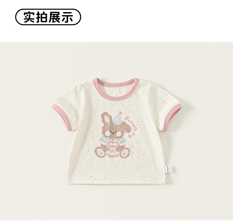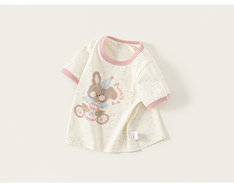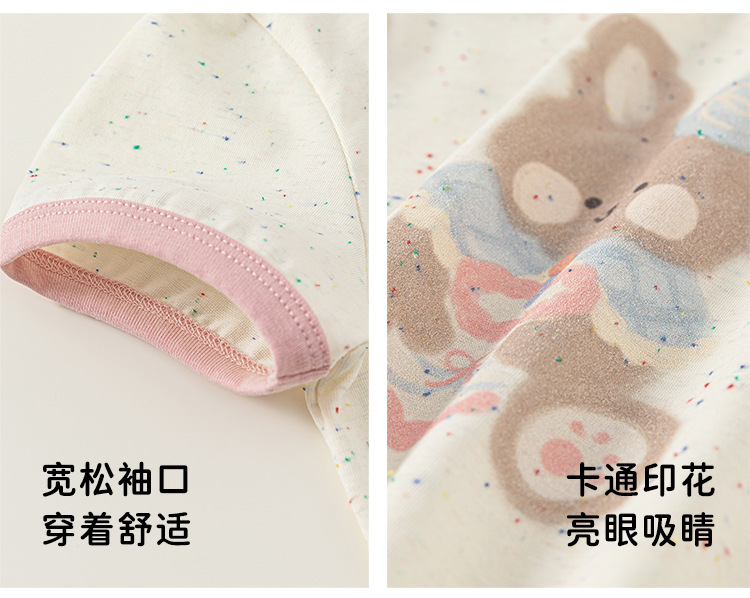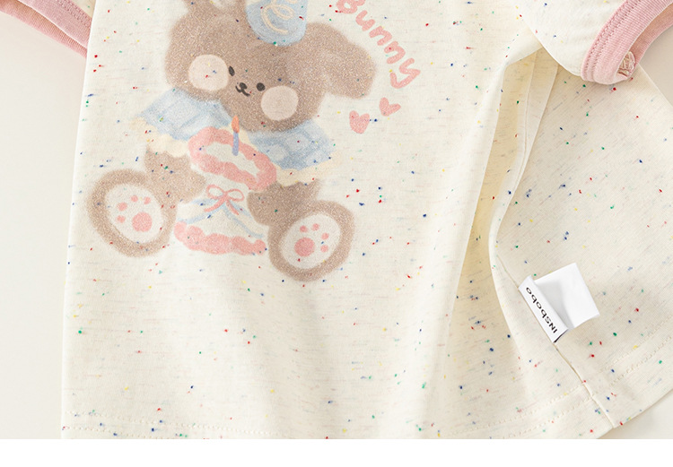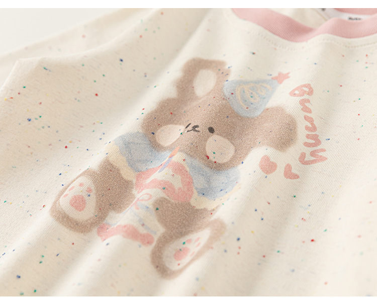 Bangxuan 여자 여름 새로운 색상 매칭 라운드 넥 탑 어린이 느슨한 반팔 귀여운 ins 스타일 곰 프린트 티셔츠