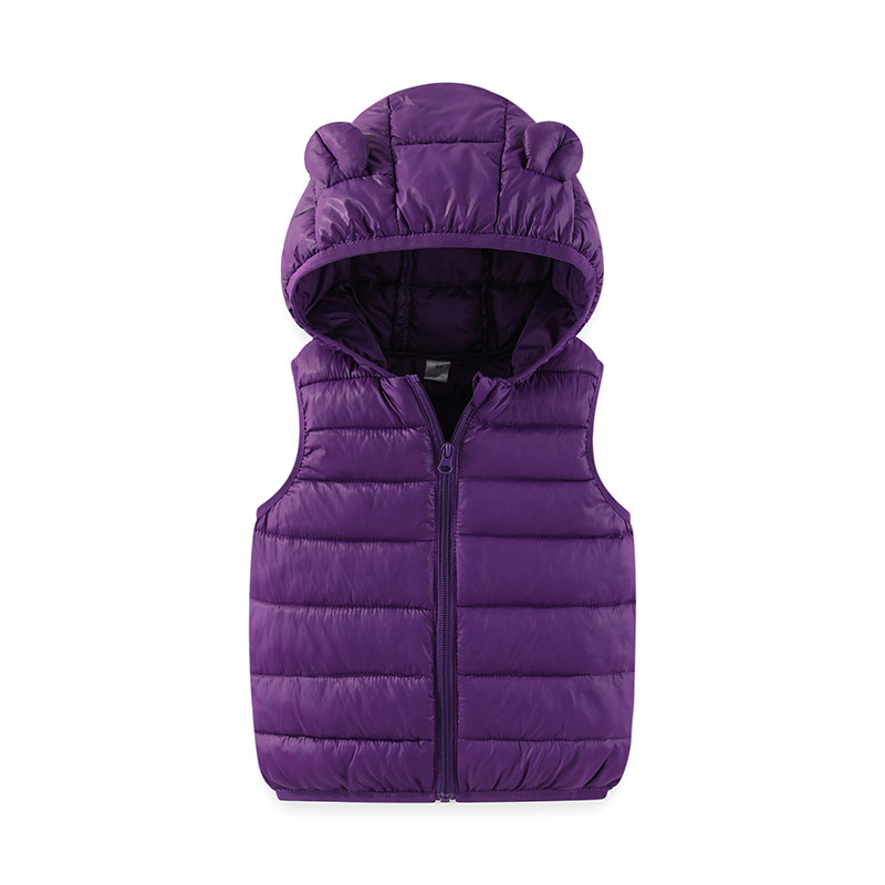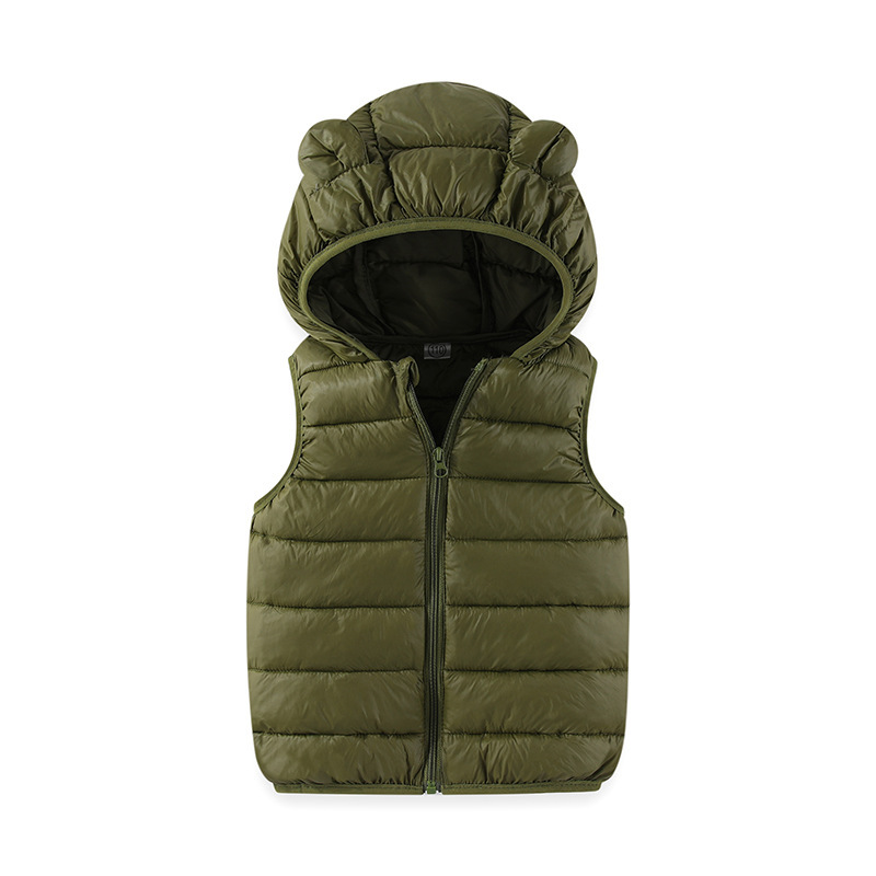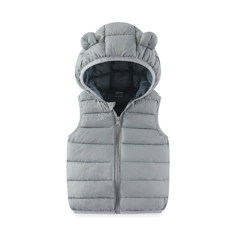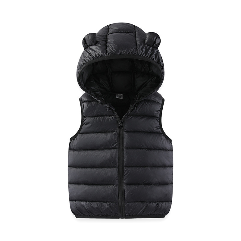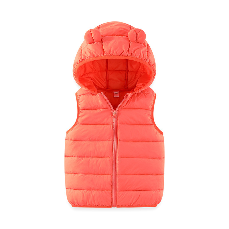 어린이 다운 코튼 조끼 가을, 겨울 한국어 버전 중대형 소년 소녀 후드 작은 귀 조끼 유치원 조끼