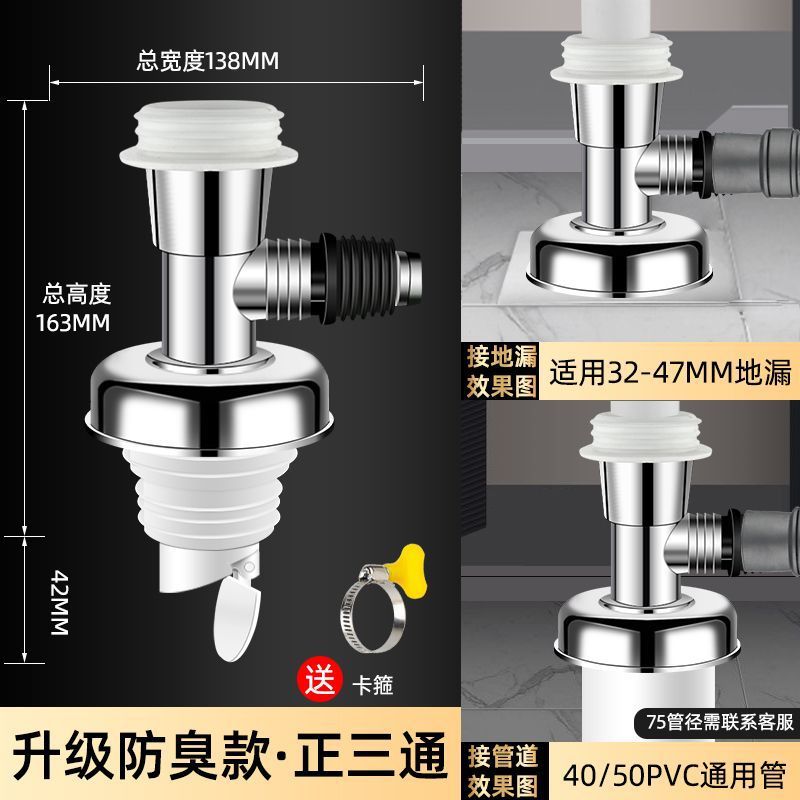 세탁기 바닥 배수구 특수 커넥터 배수관 하수구 탈취제 오버플로 방지 장치 욕실 3방향 커버 주방스토어 가기