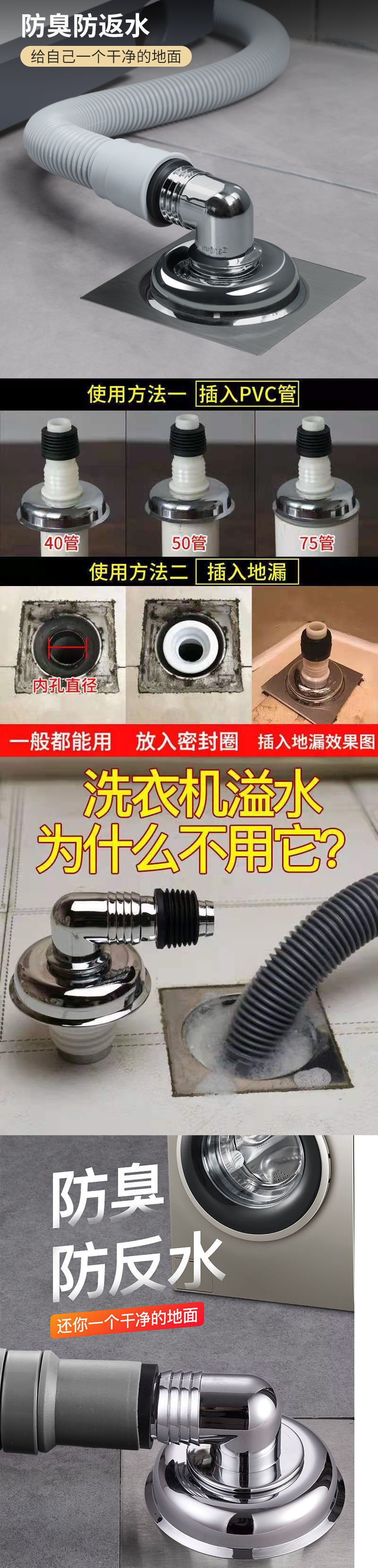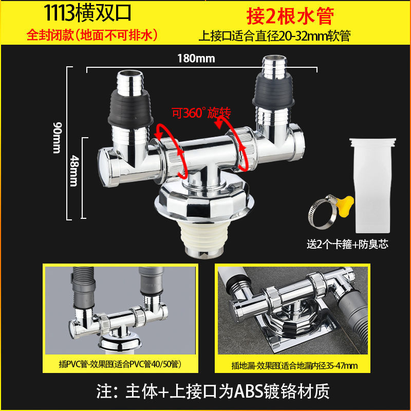 세탁기 바닥 배수구 특수 커넥터 배수관 하수구 탈취제 오버플로 방지 장치 욕실 3방향 커버 주방