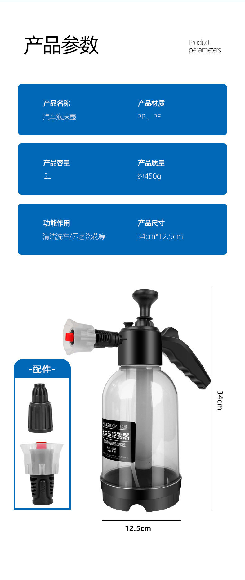 자동차 폼 스프레이 병 고압 핸드 스프레이 2L 대용량 가정용 스프레이 병 세차 청소 및 꽃 물주기 다기능 스프레이 병