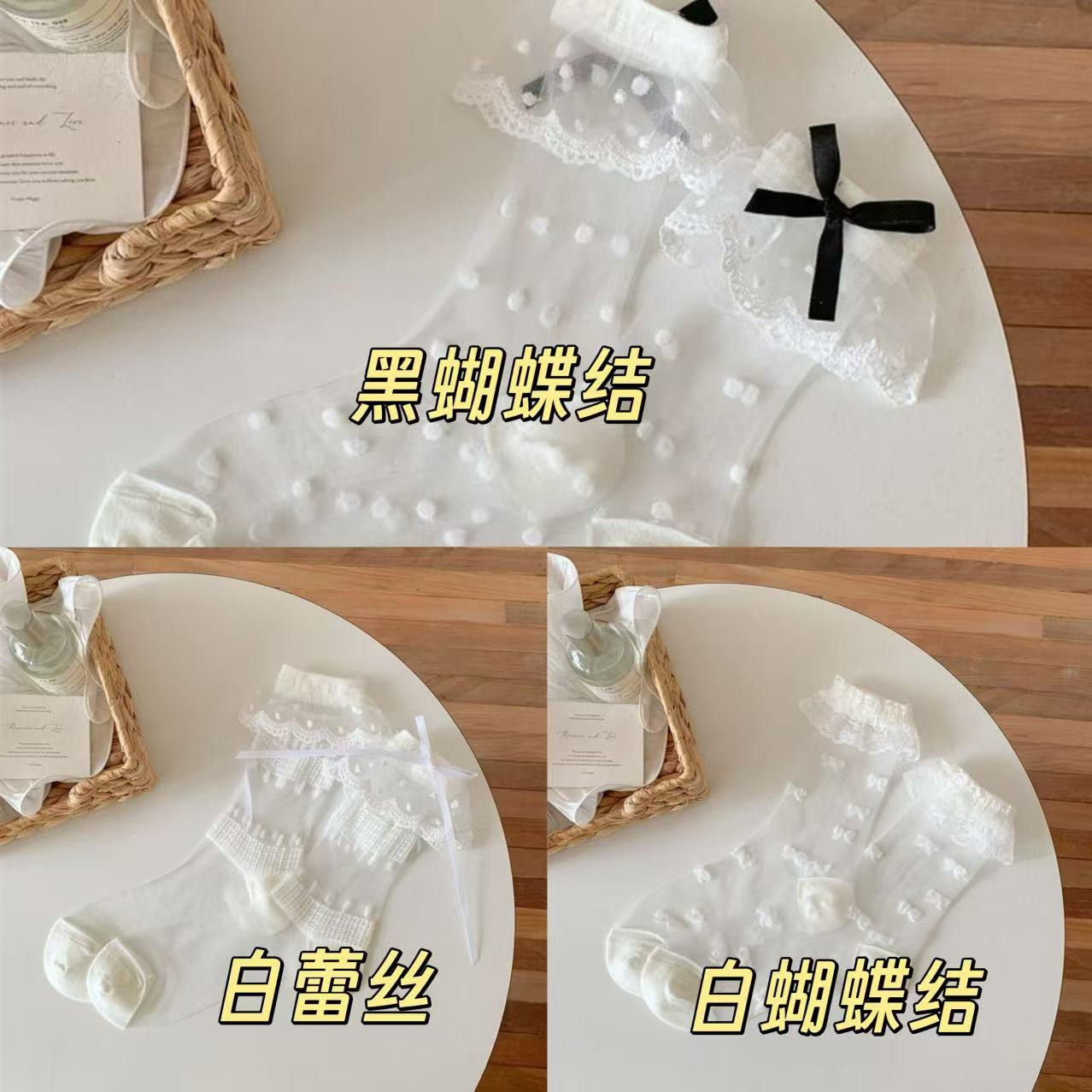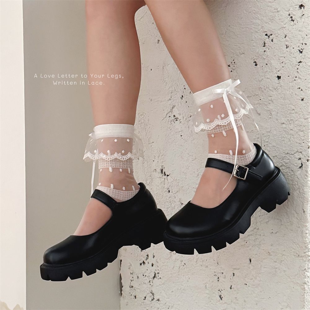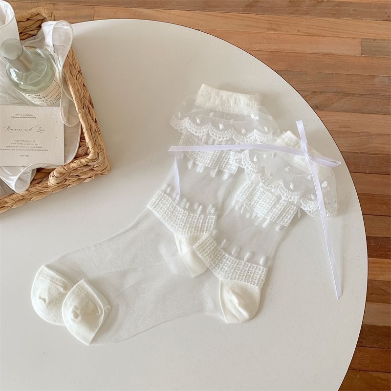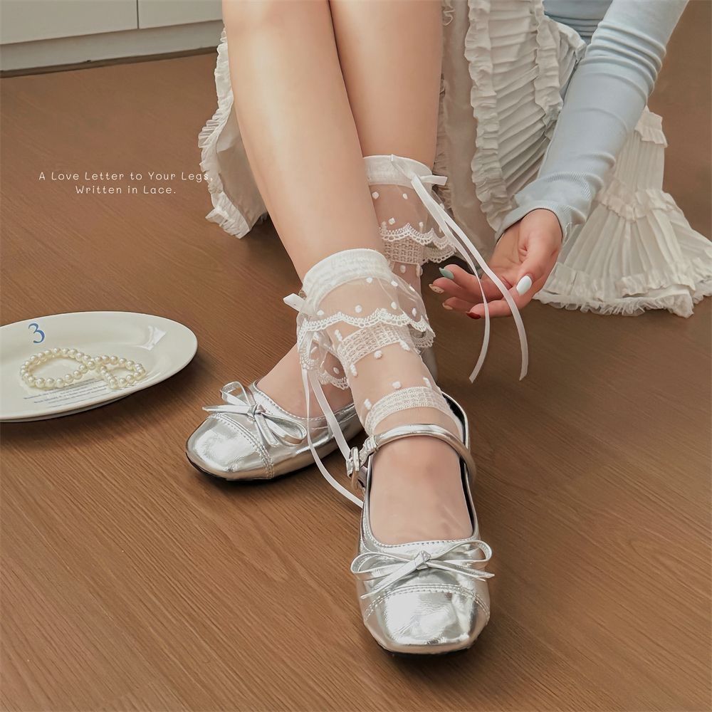 여성용 여름 레이스 종아리 양말, 얇고 귀엽고 달콤한 리본 도트 무늬 로리타 JK 여성용 다용도 양말
