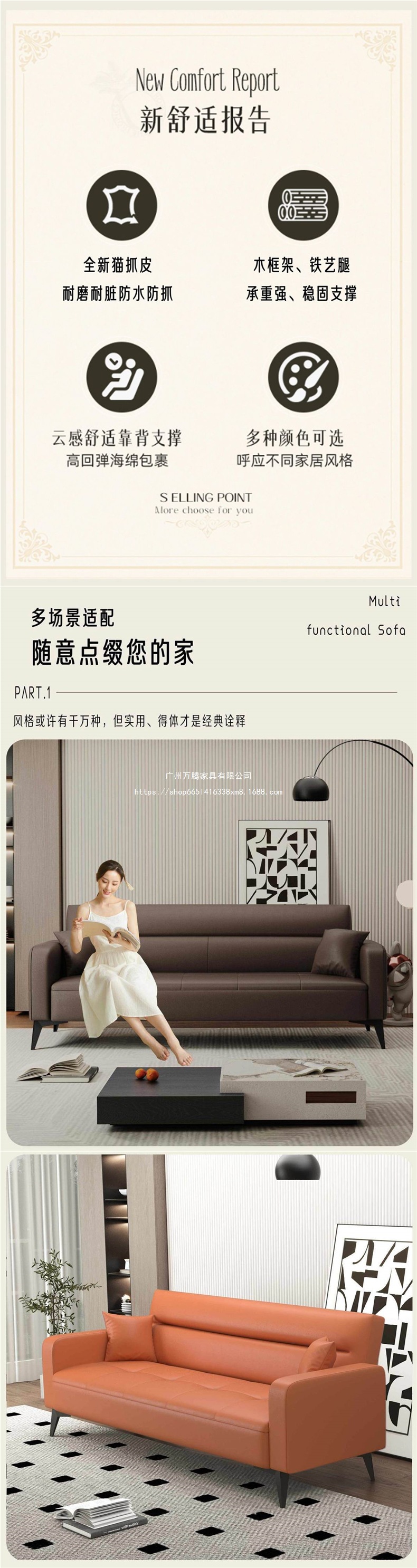 WanTeng 고양이 발톱 가죽 소파 침대 접이식 이중 목적 작은 아파트 거실 침실 매장 소파 아파트 임대 방 WanTeng