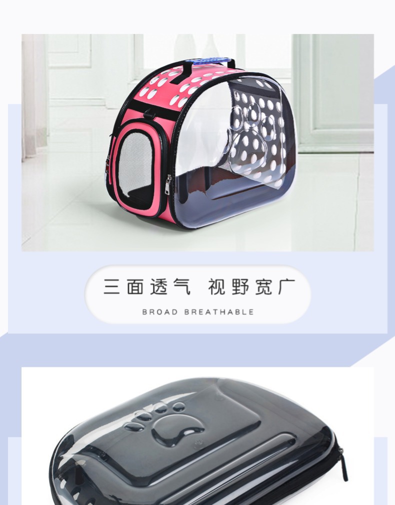 국경 간 휴대용 어깨 크로스 바디 접이식 투명 애완 동물 가방 어깨 통기성 개 외출 패션 투명 고양이 가방스토어 가기
