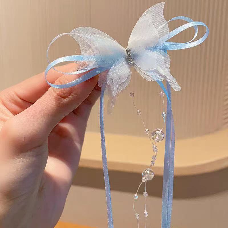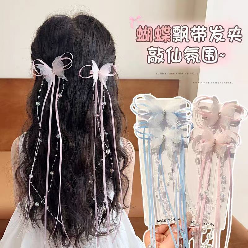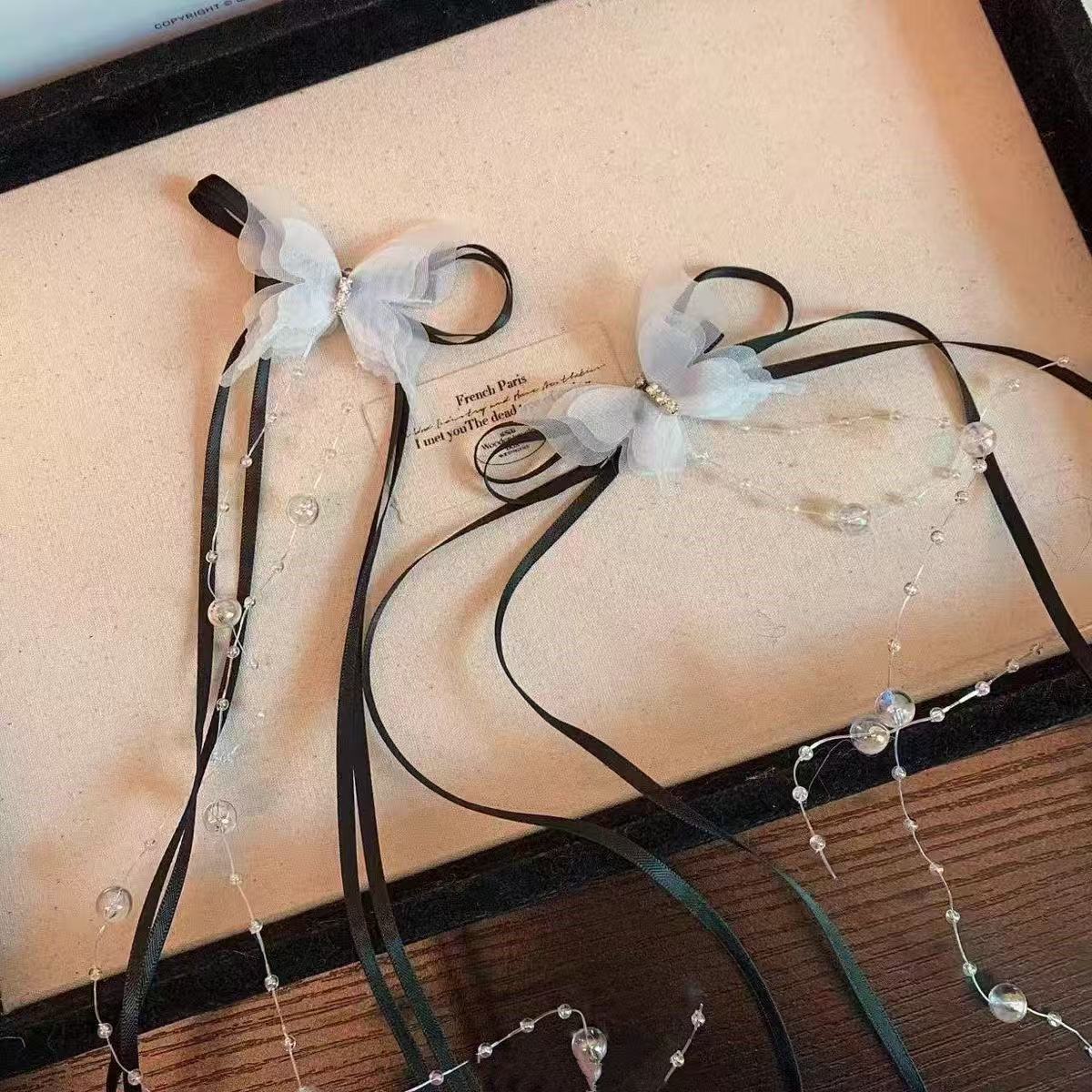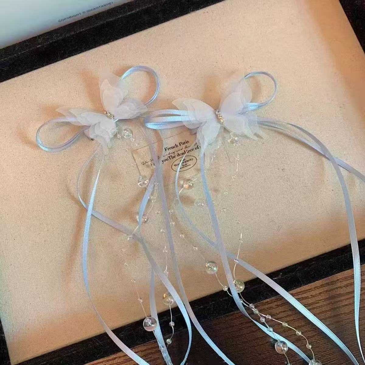 판타지 발레 ~ 프렌치 레트로 리본 비즈 롱 태슬 나비 머리핀 여성 발레 스타일 스위트 클립 헤어 액세서리
