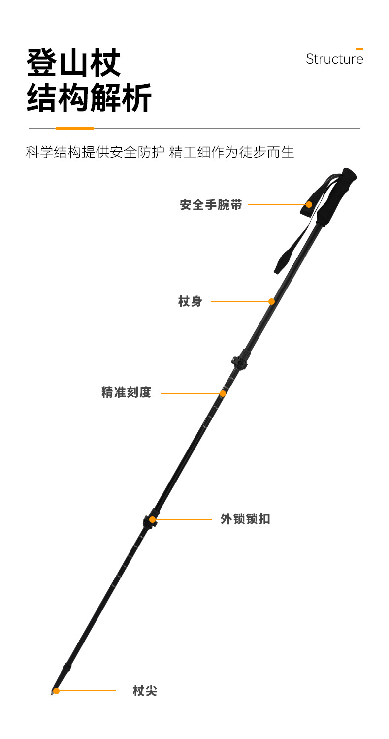 야외 등산 다기능 알루미늄 합금 탄소 섬유 등산 트레킹 지팡이 등산 스틱 A1C1