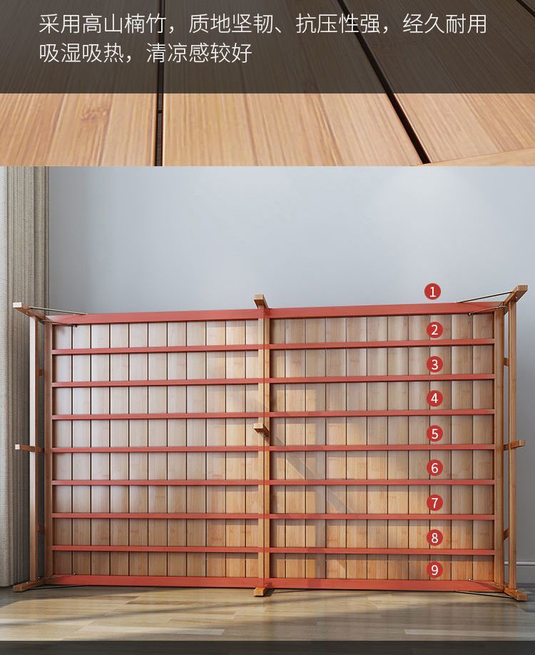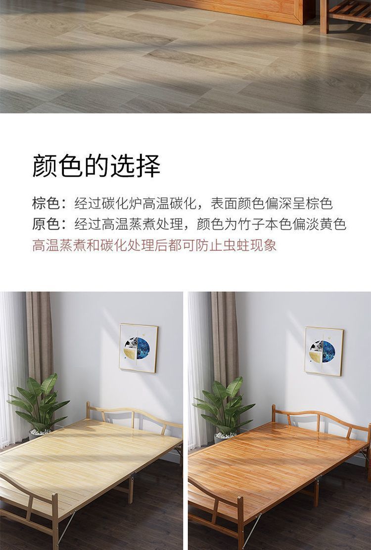 대나무 침대 접이식 침대 싱글 더블 홈 점심 시간 시원한 침대 성인 임대 주택 간단한 단단한 나무 침대 대나무 침대스토어 가기