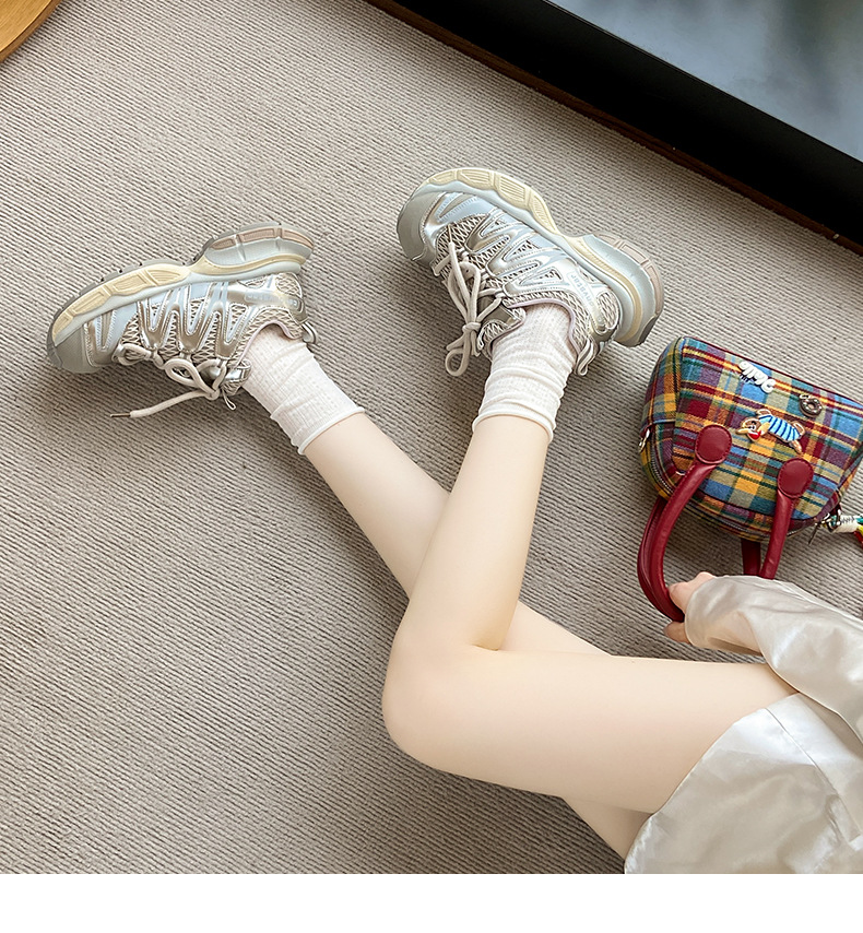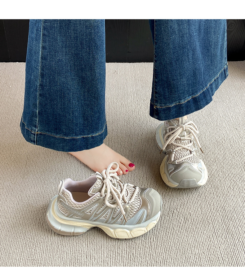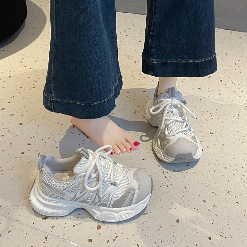 여성을위한 메쉬 통기성 아빠 신발 2025 여름 새로운 다목적 대형 두꺼운 밑창 경량 러닝 캐주얼 스포츠 신발스토어 가기