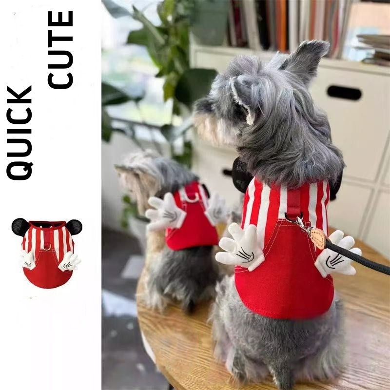 견인 로프 조끼 스타일 애완 동물 고양이와 개 미키 마우스 빨간색 외출 조끼 Yorkie Schnauzer Devon