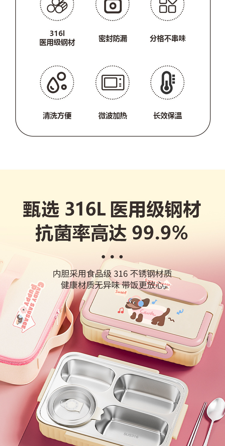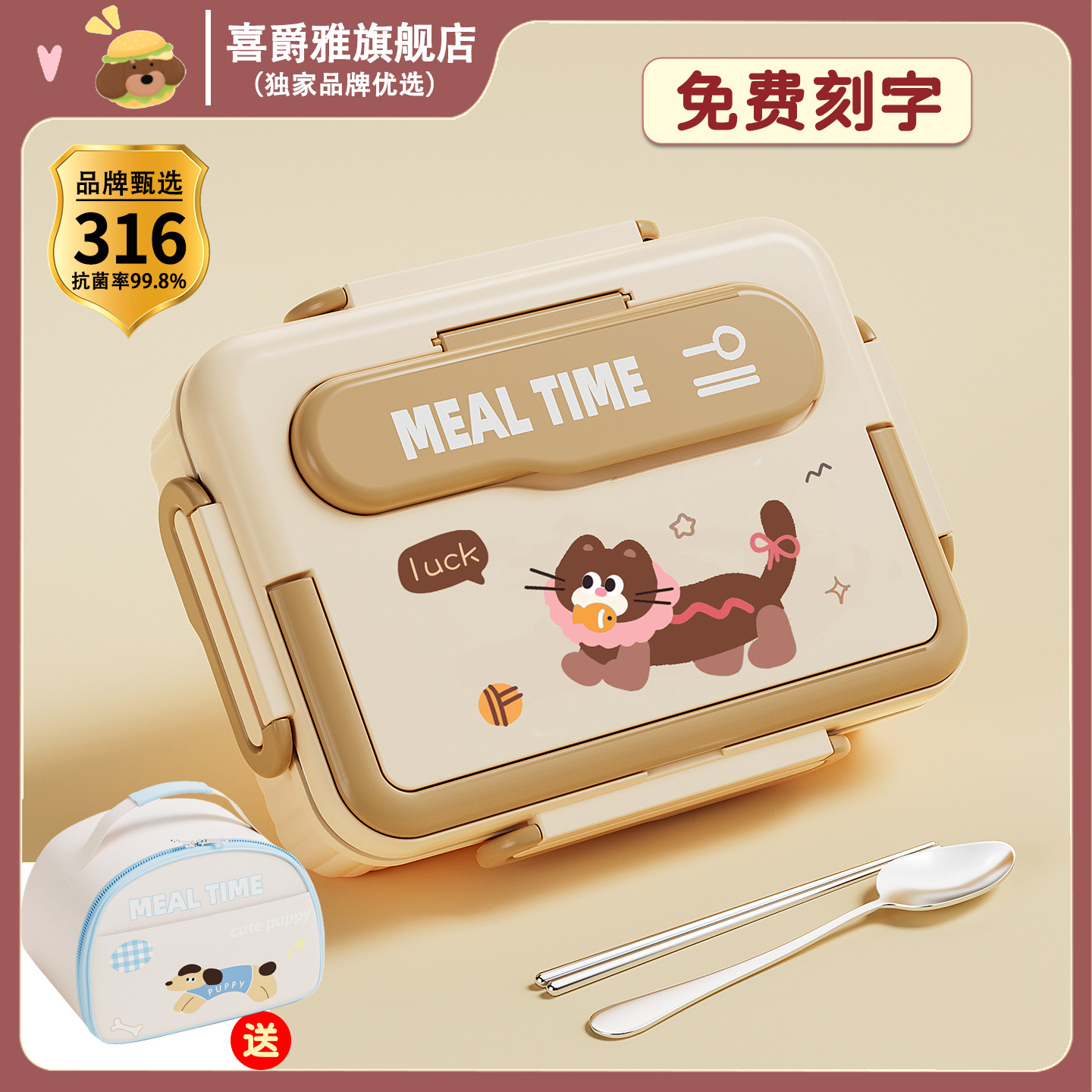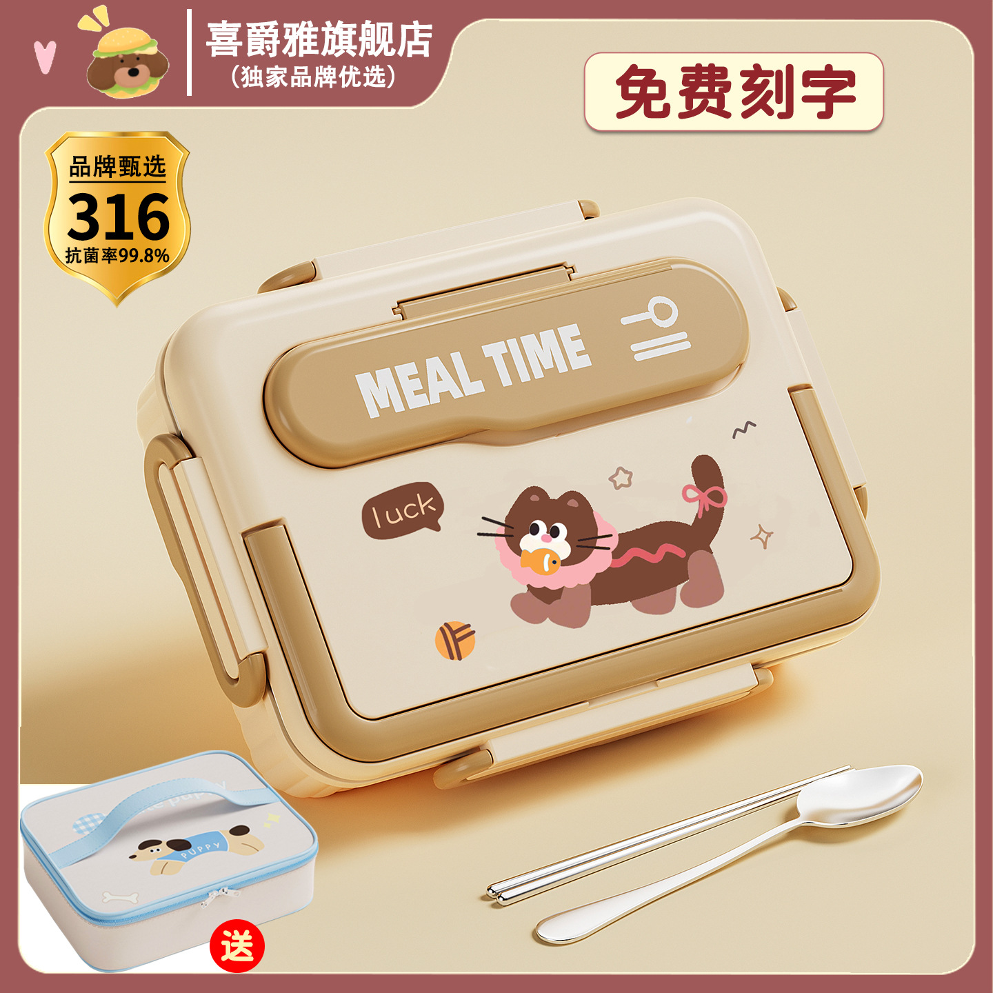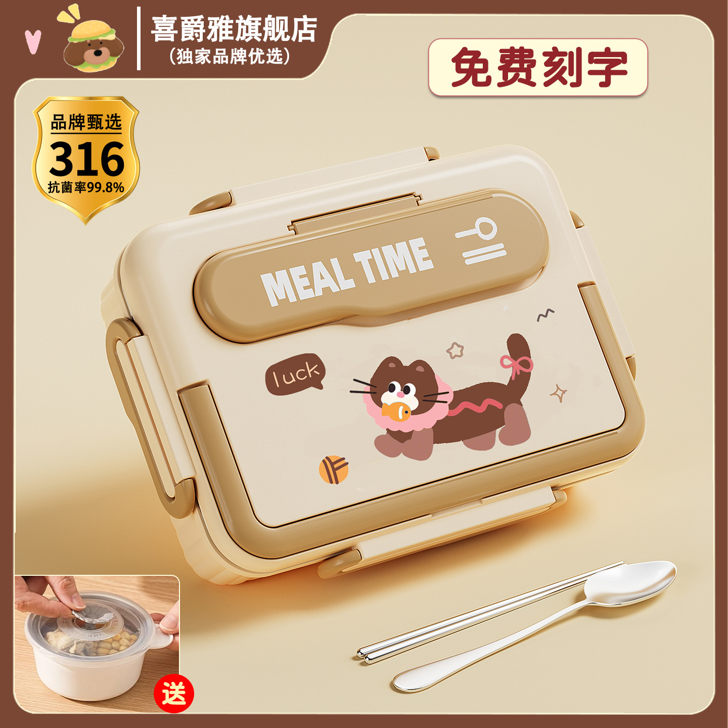 316 스테인레스 스틸 단열 도시락 학생 초등학생 귀여운 고양이 어린이 도시락 칸막이 도시락 수프 그릇 중학생스토어 가기