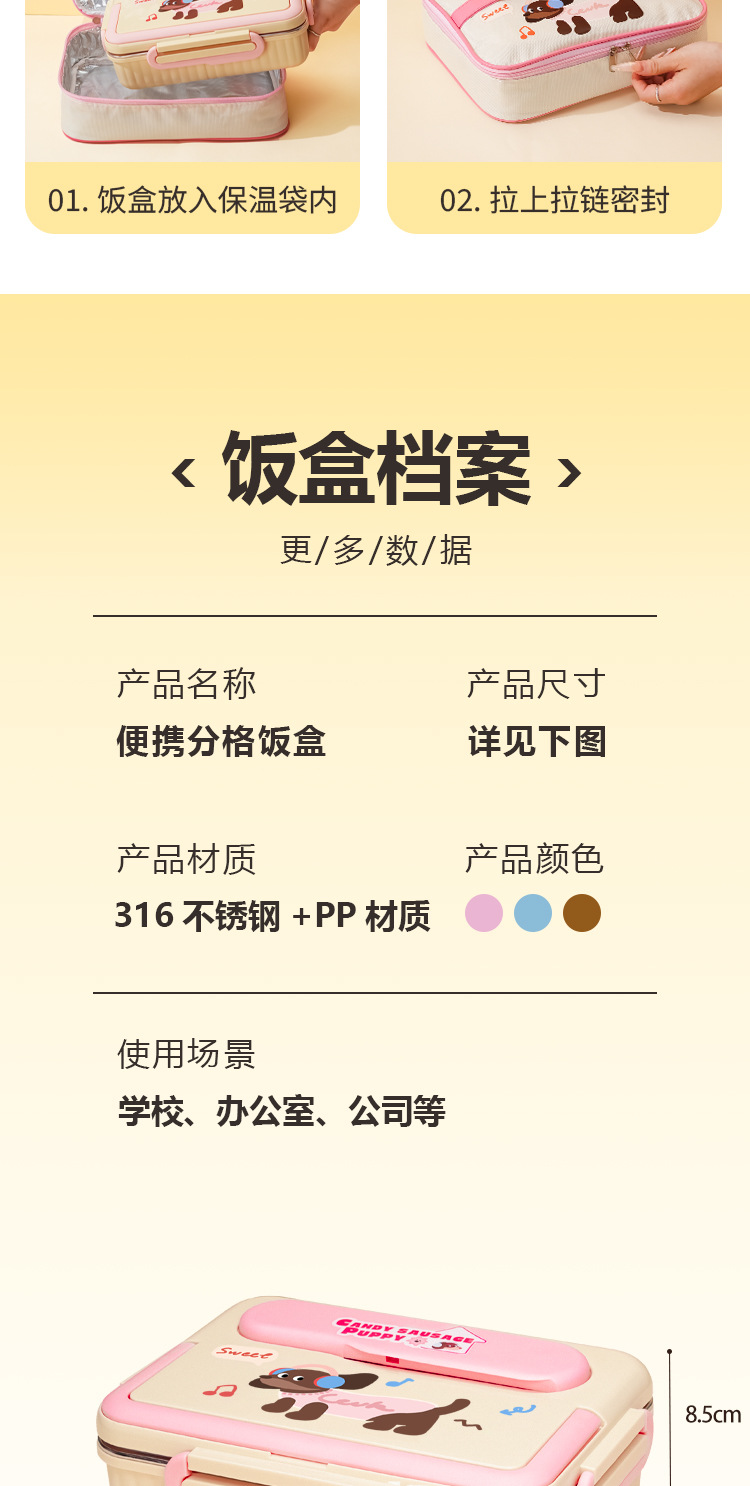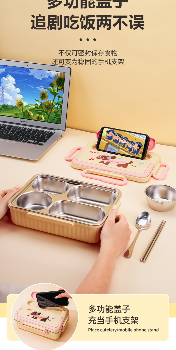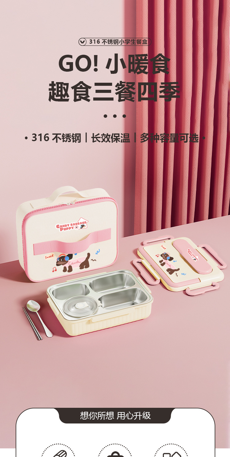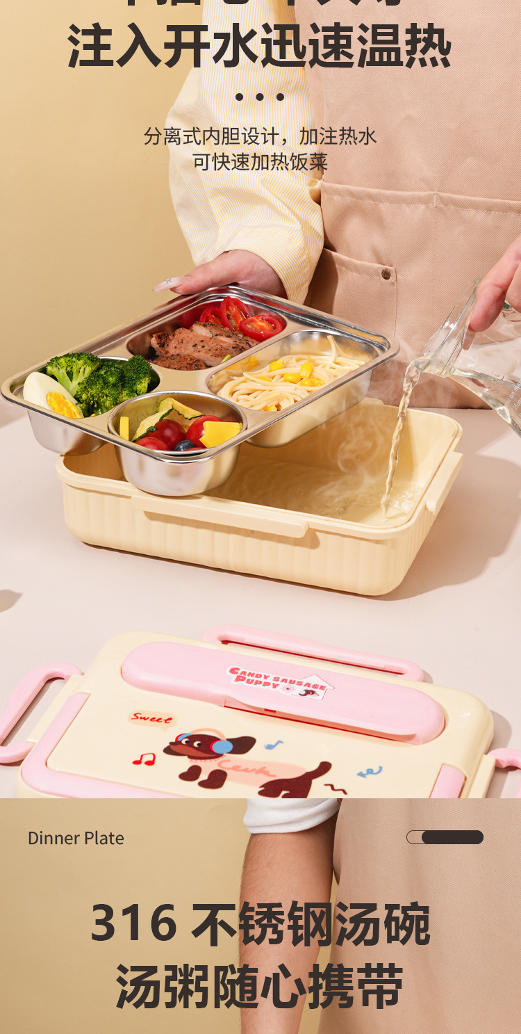 316 스테인레스 스틸 단열 도시락 학생 초등학생 귀여운 고양이 어린이 도시락 칸막이 도시락 수프 그릇 중학생스토어 가기