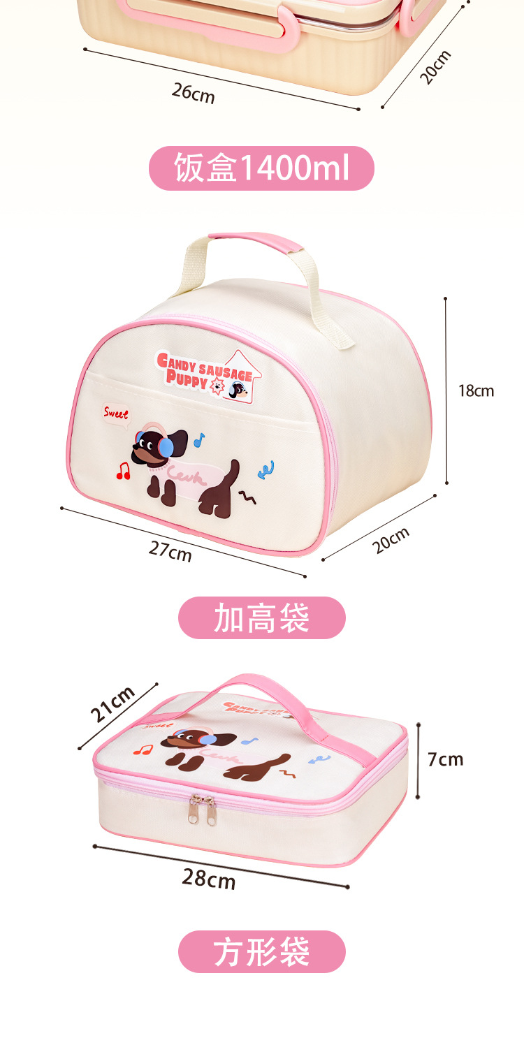 • 무인양품 [316 더블항균] 4칸 핑크개 + 국그릇 + 식기 + 도시락가방