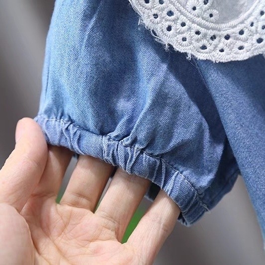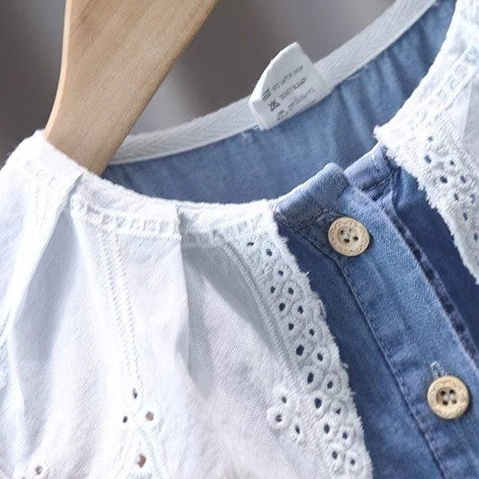 여자 드레스 여름 스타일 2024 새로운 여름 드레스 아기 소녀 레이스 칼라 반팔 여름 데님 스커트스토어 가기