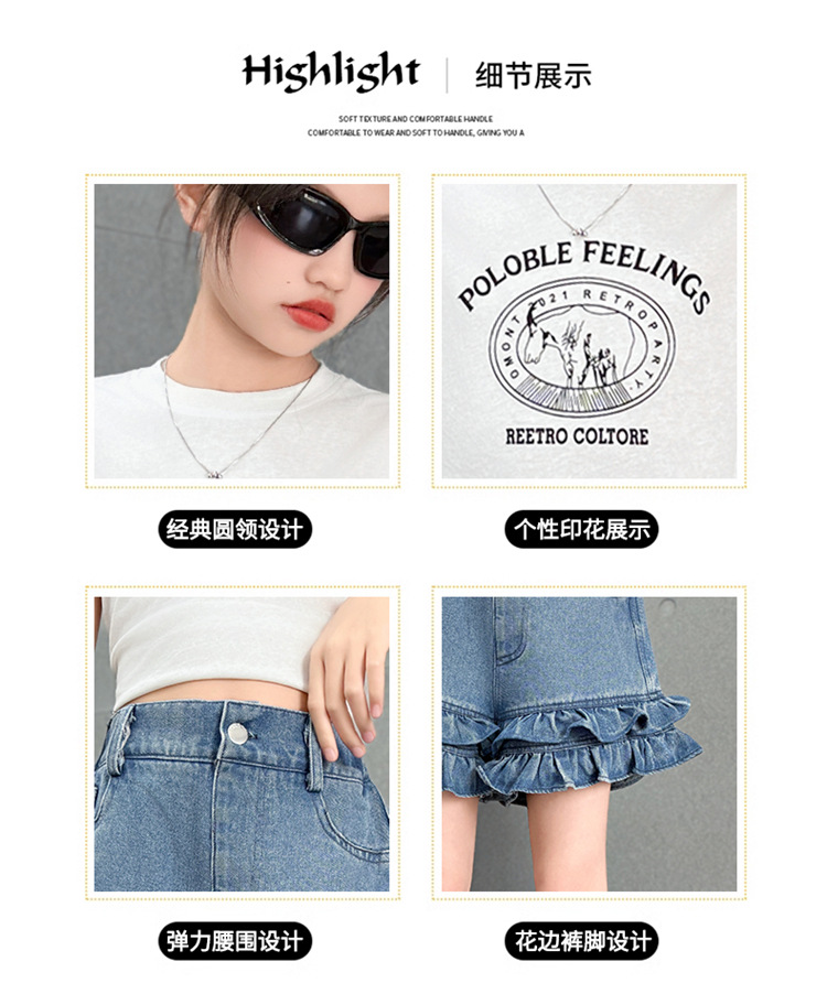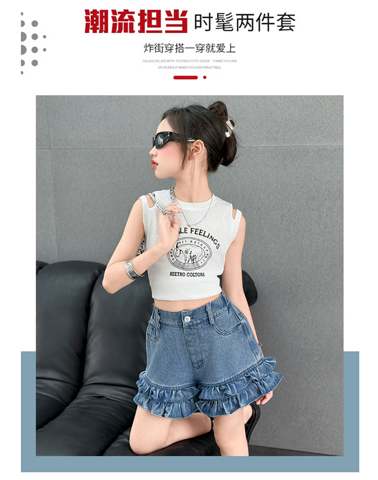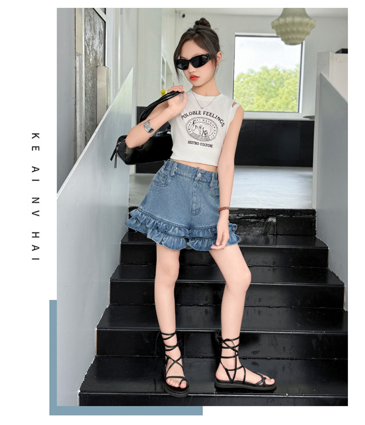 여자 여름 청바지 2025 새로운 스타일 중대형 어린이 한국 스타일 캐주얼 핫 팬츠 여자 여름 패션 반바지
