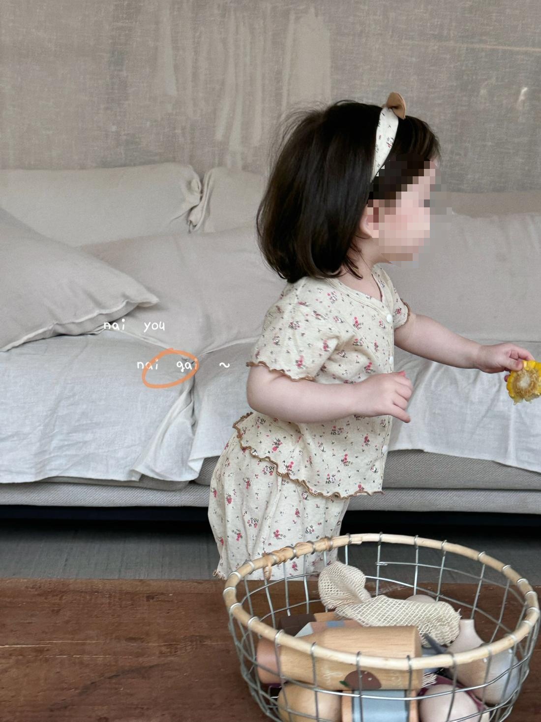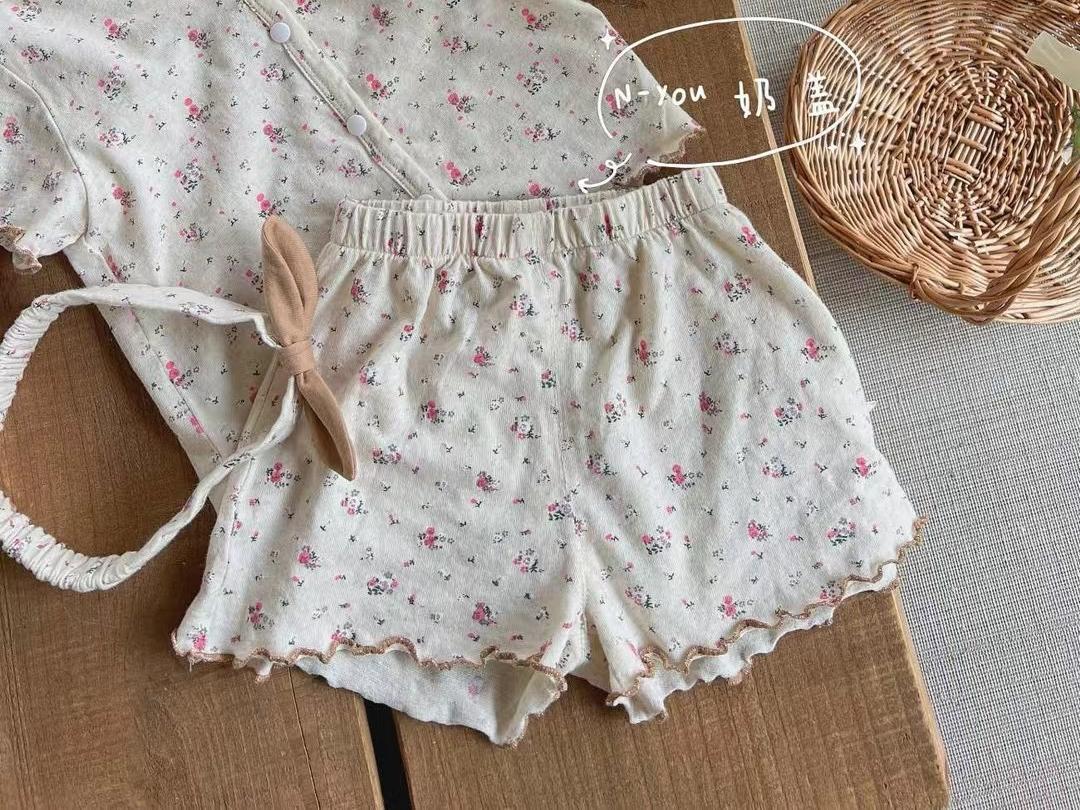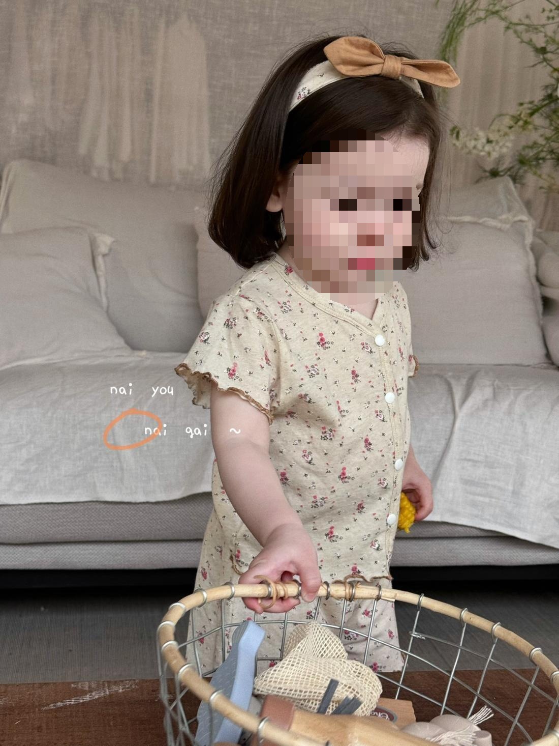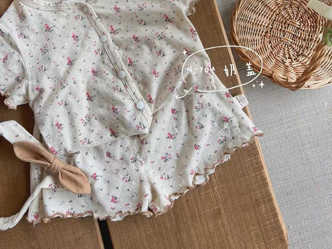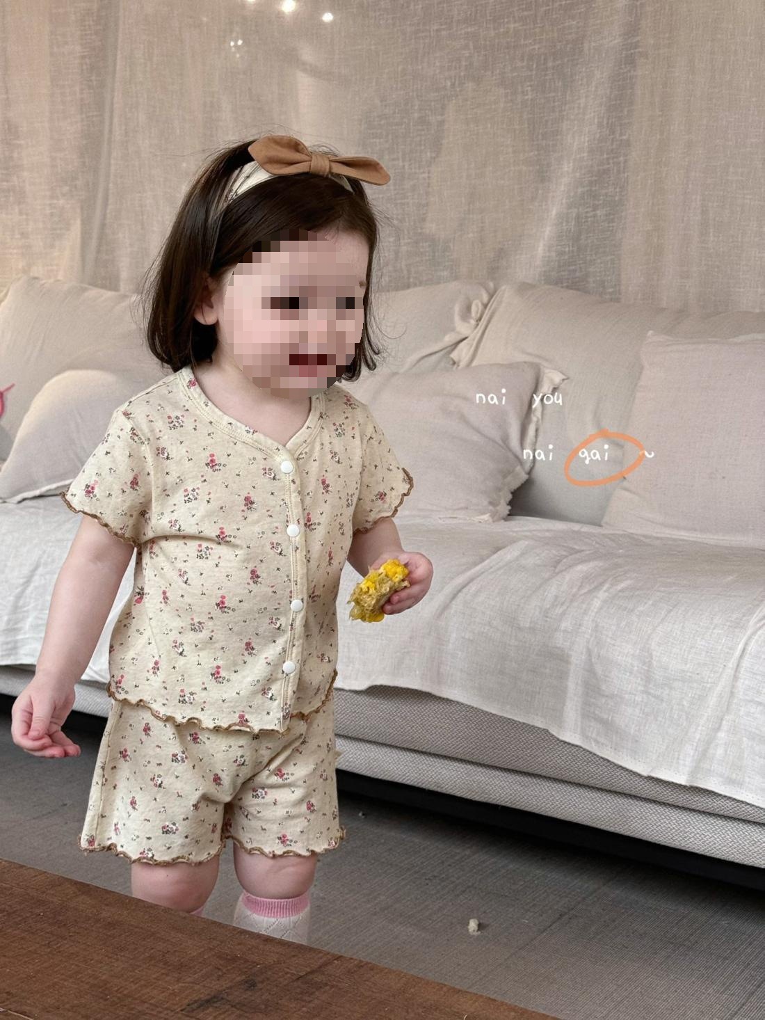 2025 새로운 여름 아기 소녀 꽃 부드러운 면화 반팔 캐주얼 정장 홈웨어스토어 가기