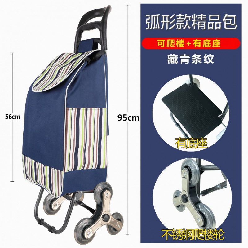 • 곡선형 손잡이 소머리 가방(계단오르기 바퀴) 남색 줄무늬