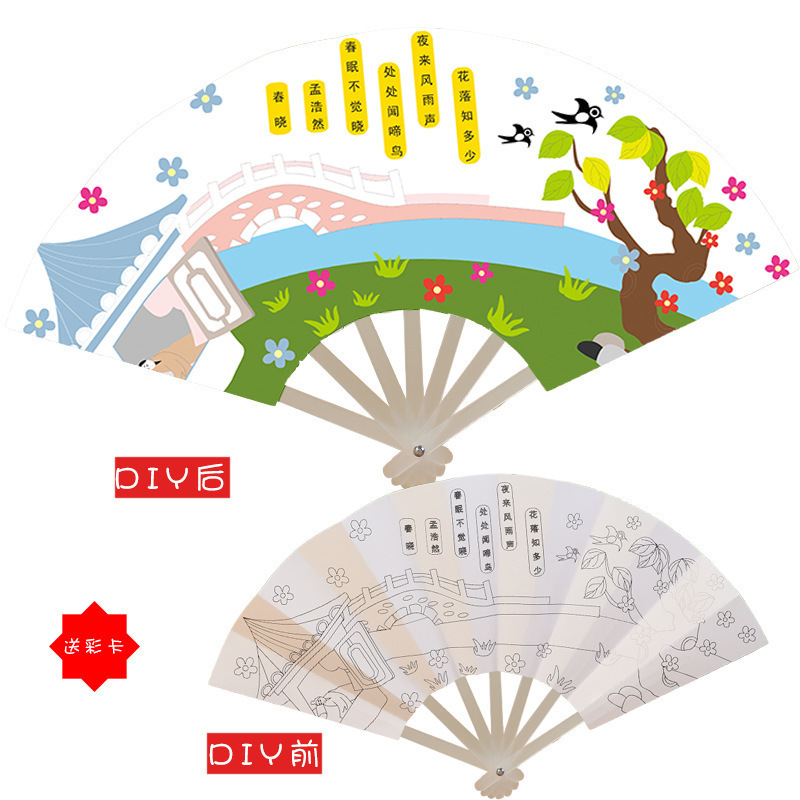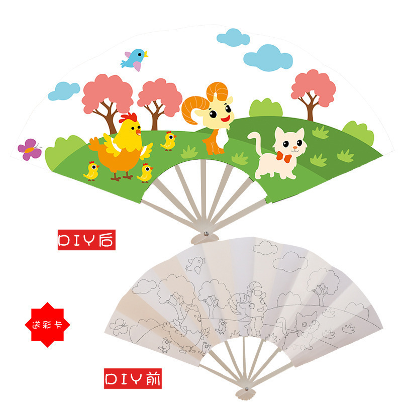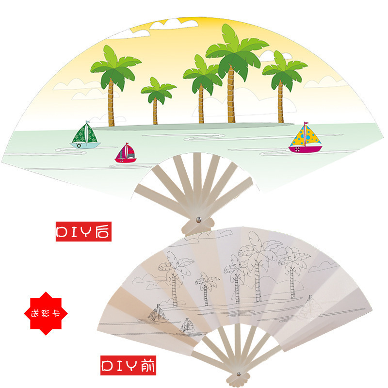 종이 그림 그리기 유치원 수제 diydiy 빈 흰색 부채 접는 부채 작은 시원한 어린이 부채