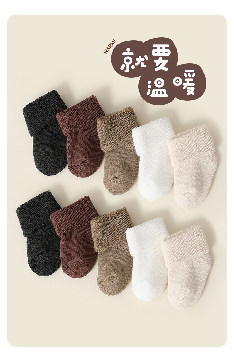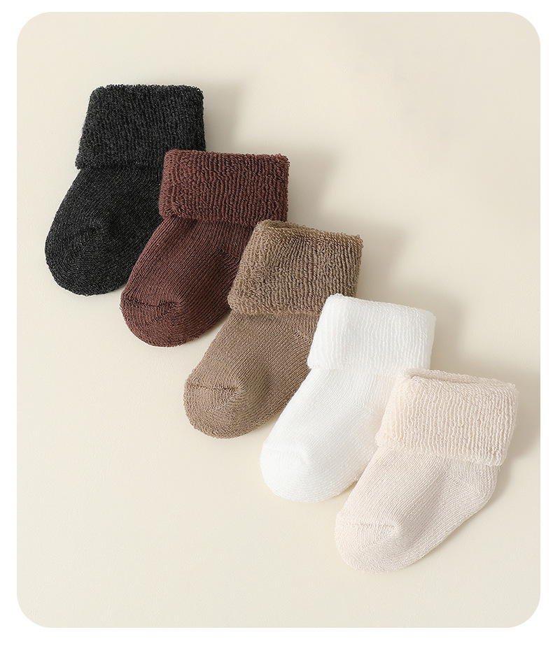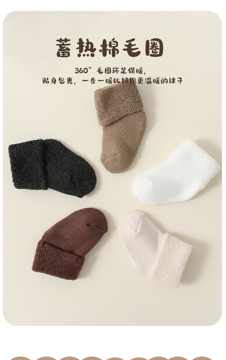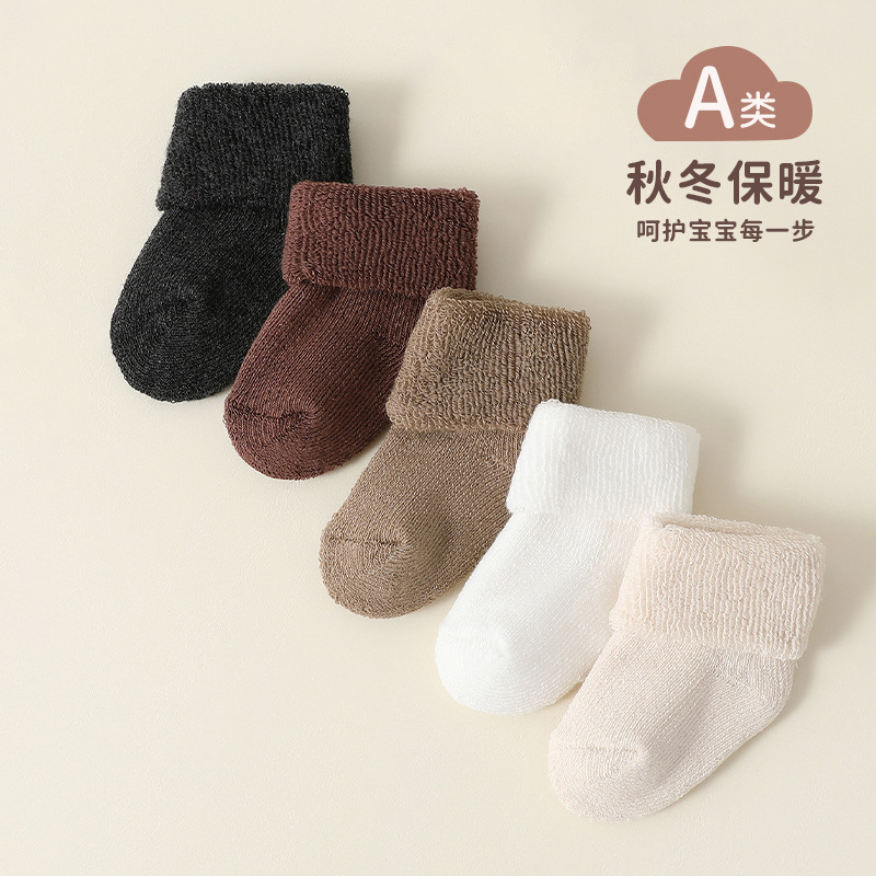 신생아 양말, 가을 겨울 두꺼운 테리 따뜻한 아기 종아리 중간 테리 양말, 신축성이 없음