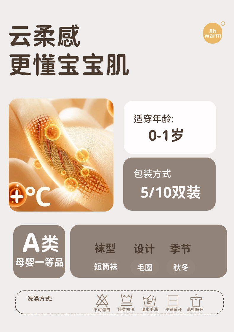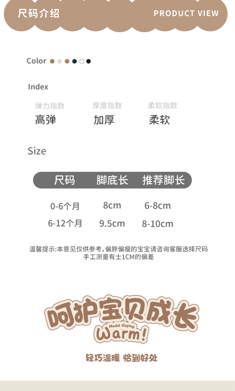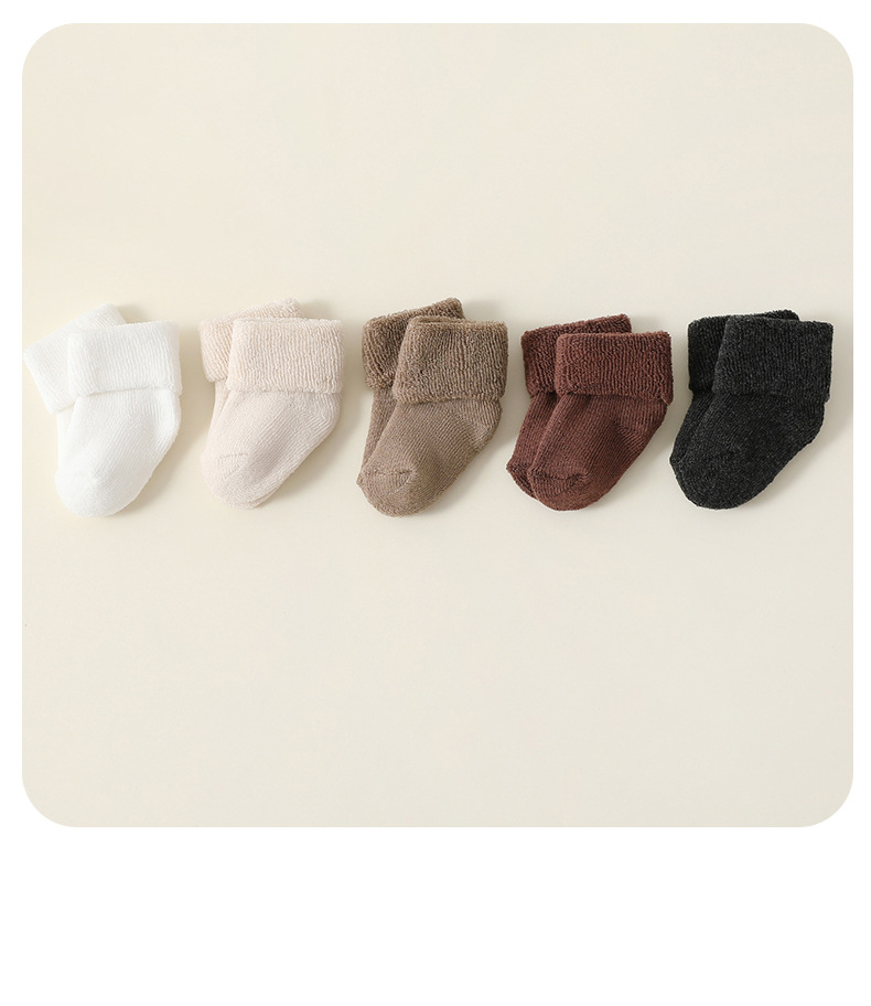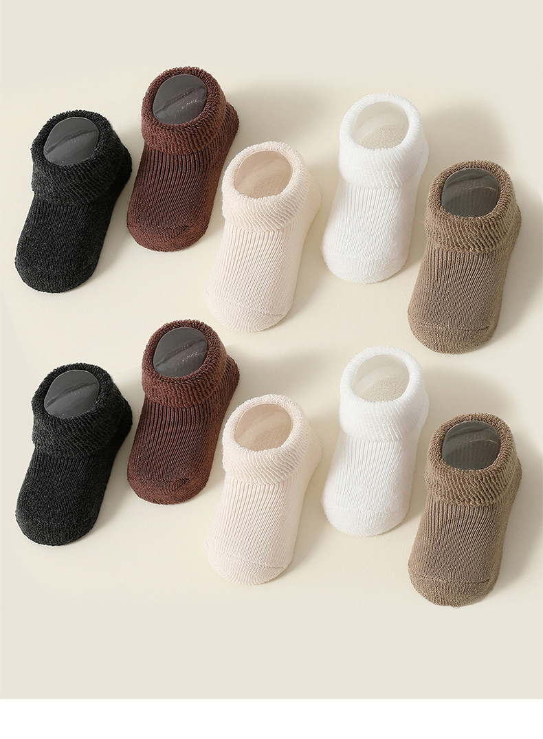 신생아 양말, 가을 겨울 두꺼운 테리 따뜻한 아기 종아리 중간 테리 양말, 신축성이 없음