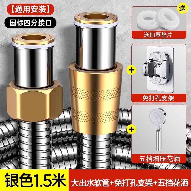 • [실버 대형 배수구 세트] 호스 1.5m개 + 5단 슈퍼차저 샤워기