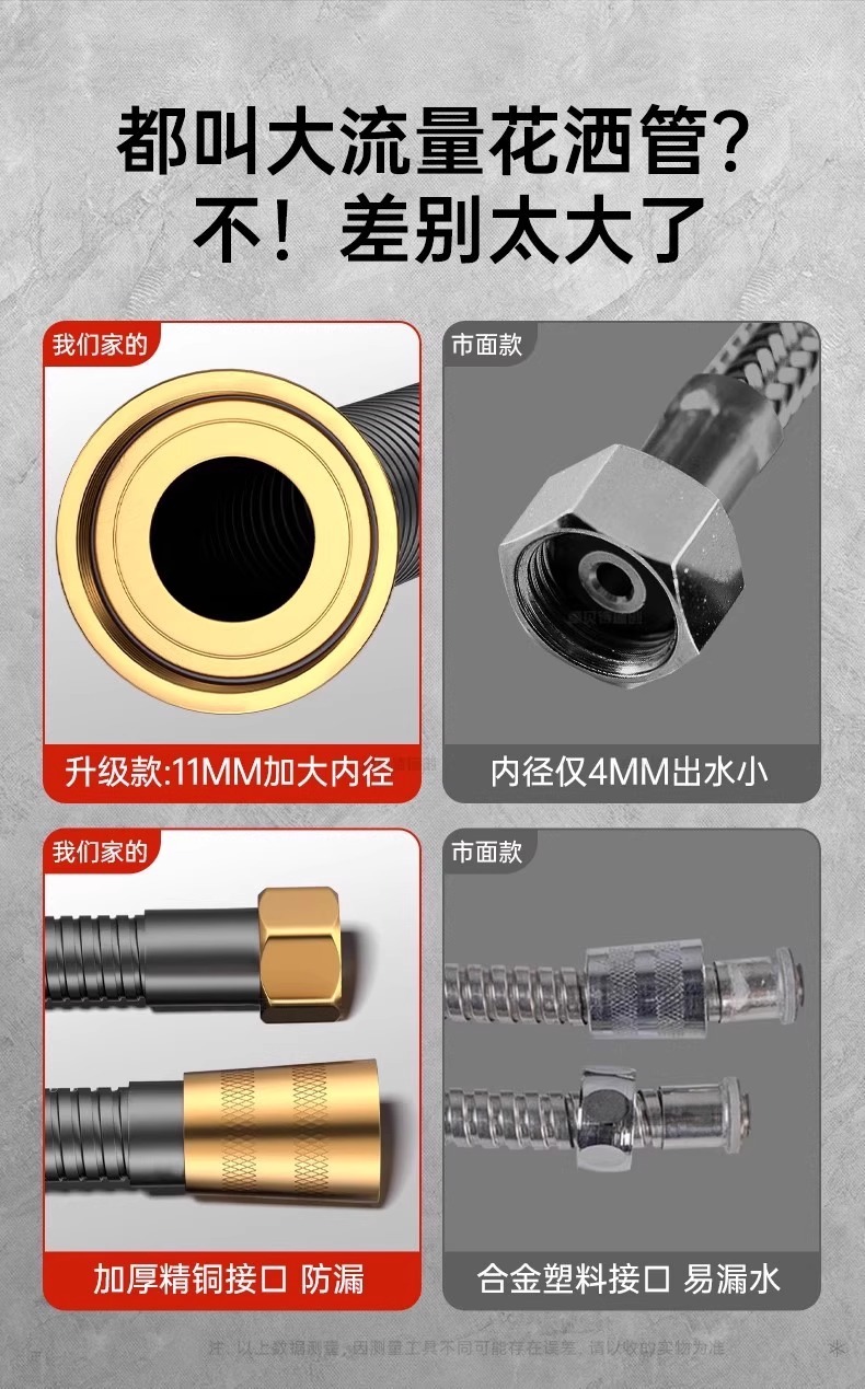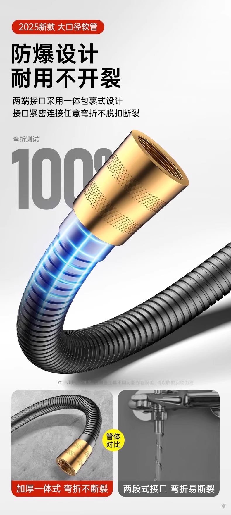 대구경 샤워 호스 스테인레스 스틸 가압 대유량 수도관 방폭형 샤워 욕조 온수기 배수 연결 파이프