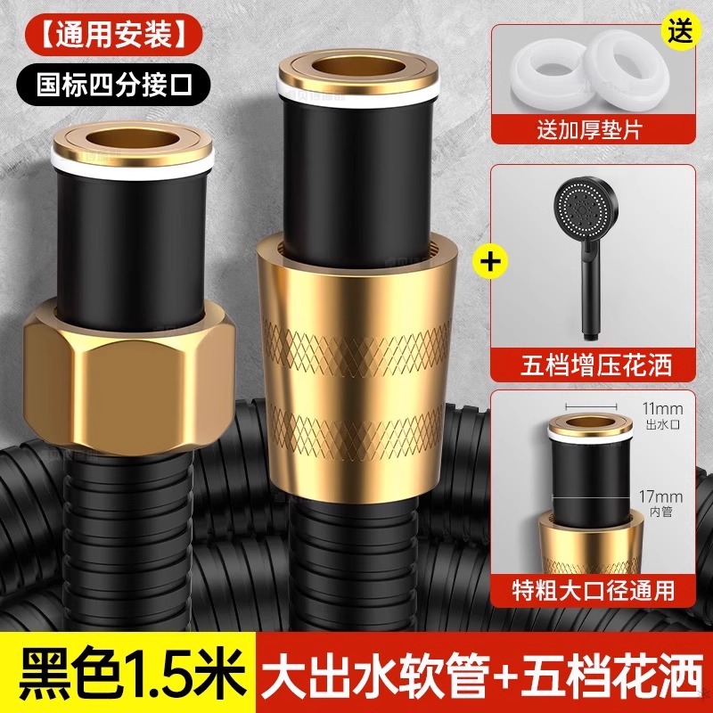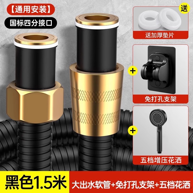 • [블랙 대형 배수구 세트] 호스 1.5m개 + 5단 슈퍼차저 샤워기