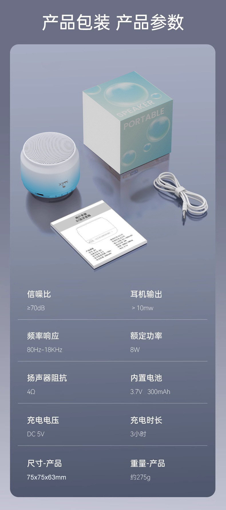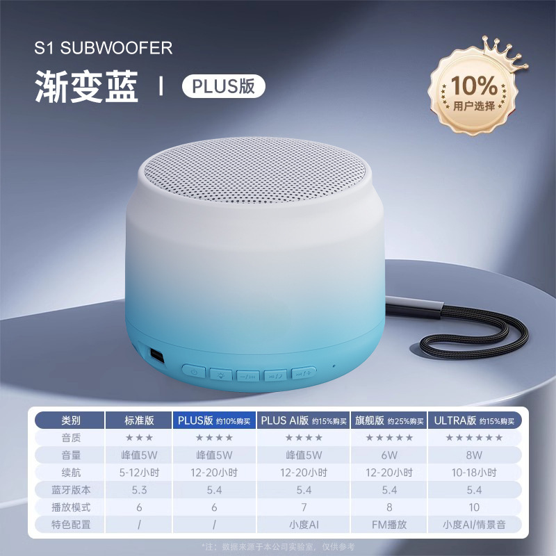 • 플러스 버전 - 그라데이션 블루 [HIFI 음질 + 블루투스 5.4 + 5w 충격적인 사운드 웨이브 + 배터리 수명 두 배 + 볼륨 기능 조정]