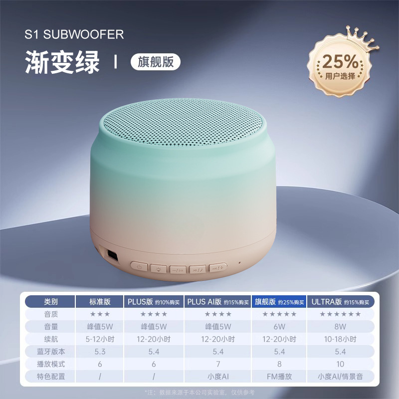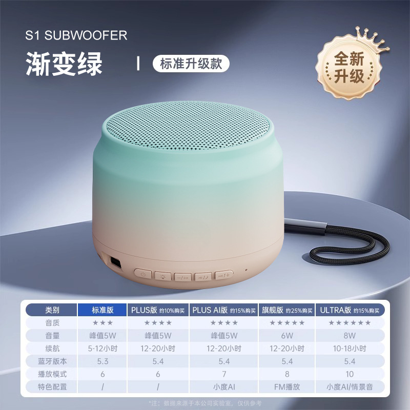 • 플러스 버전 - 그라데이션 그린 [HIFI 음질 + 블루투스 5.4 + 5w 충격적인 사운드 웨이브 + 배터리 수명 두 배 + 볼륨 기능 조정]