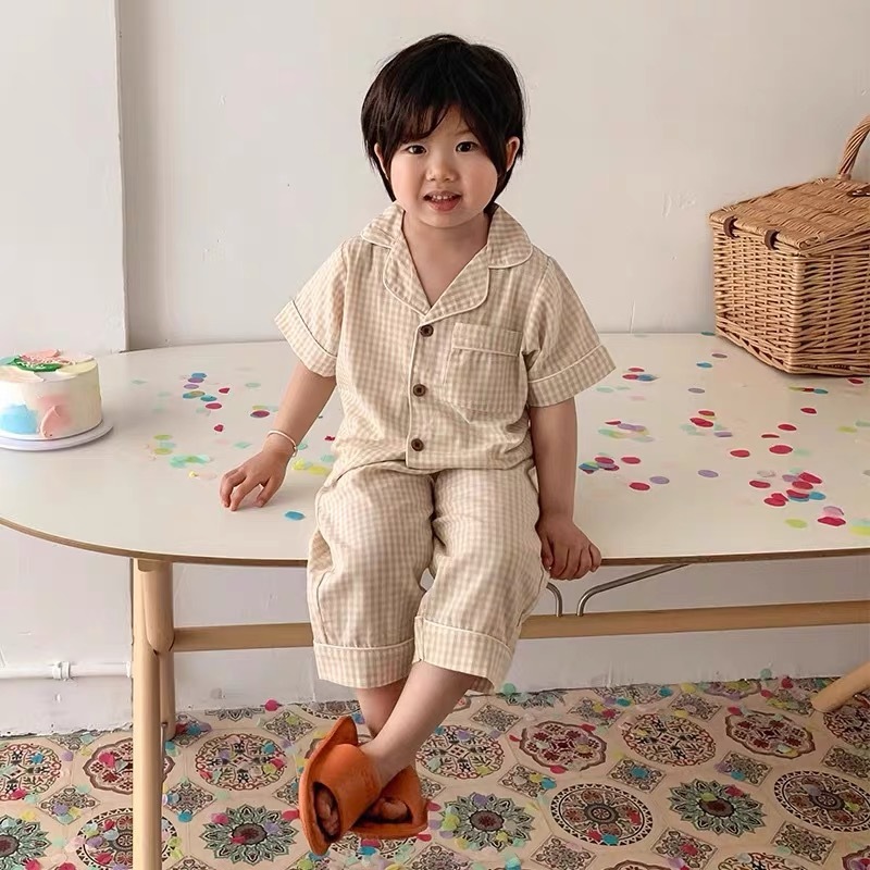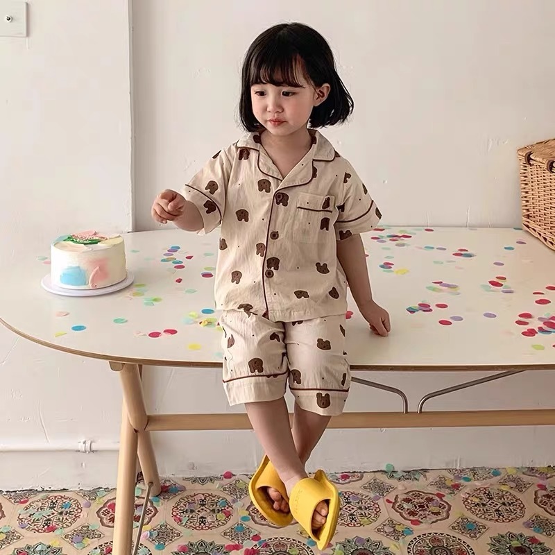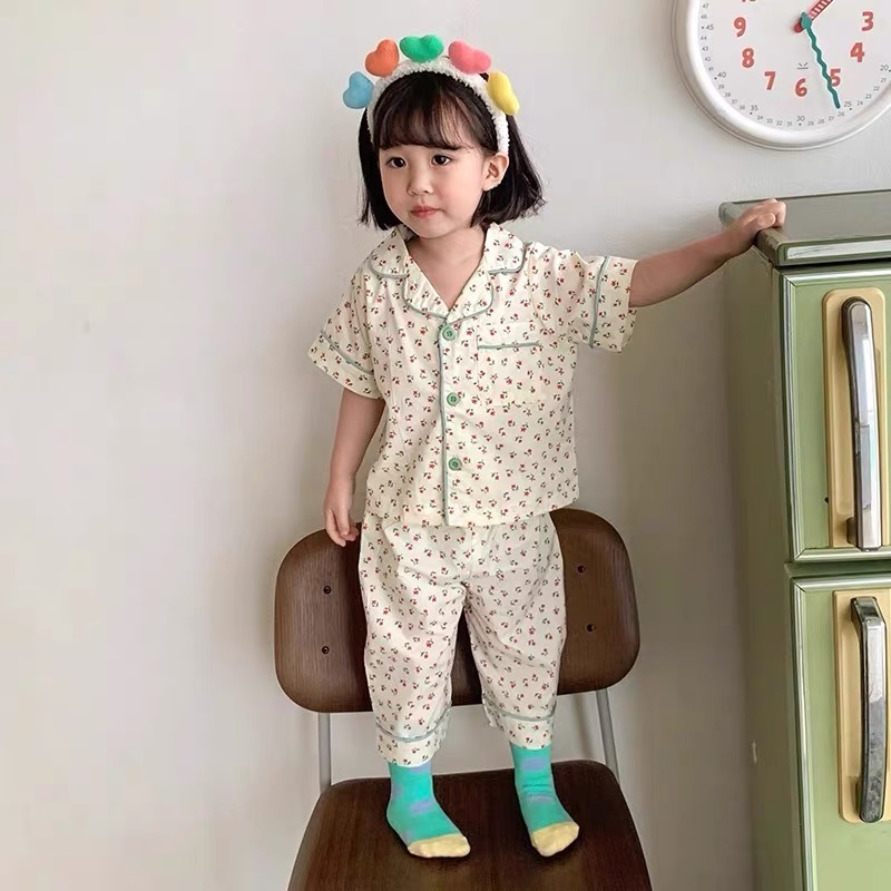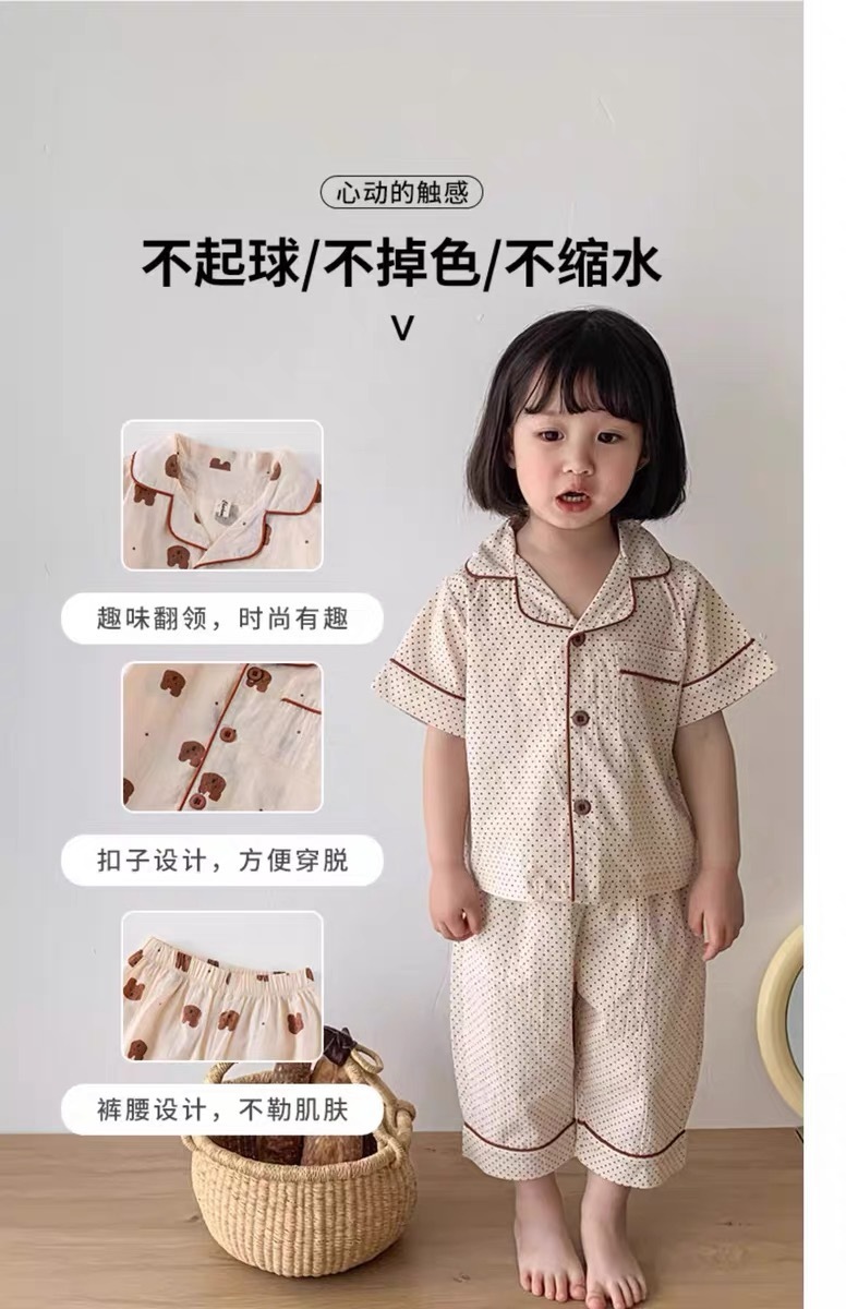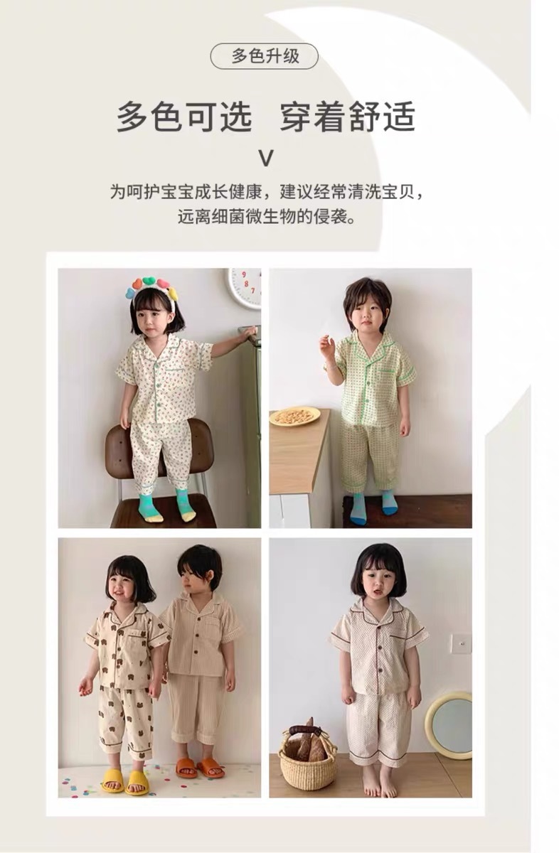 아동 및 여아 잠옷, 패셔너블한 반팔 바지, 여름 남아 가정복, 유아용 반팔 에어컨 슈트, 얇은 스타일스토어 가기