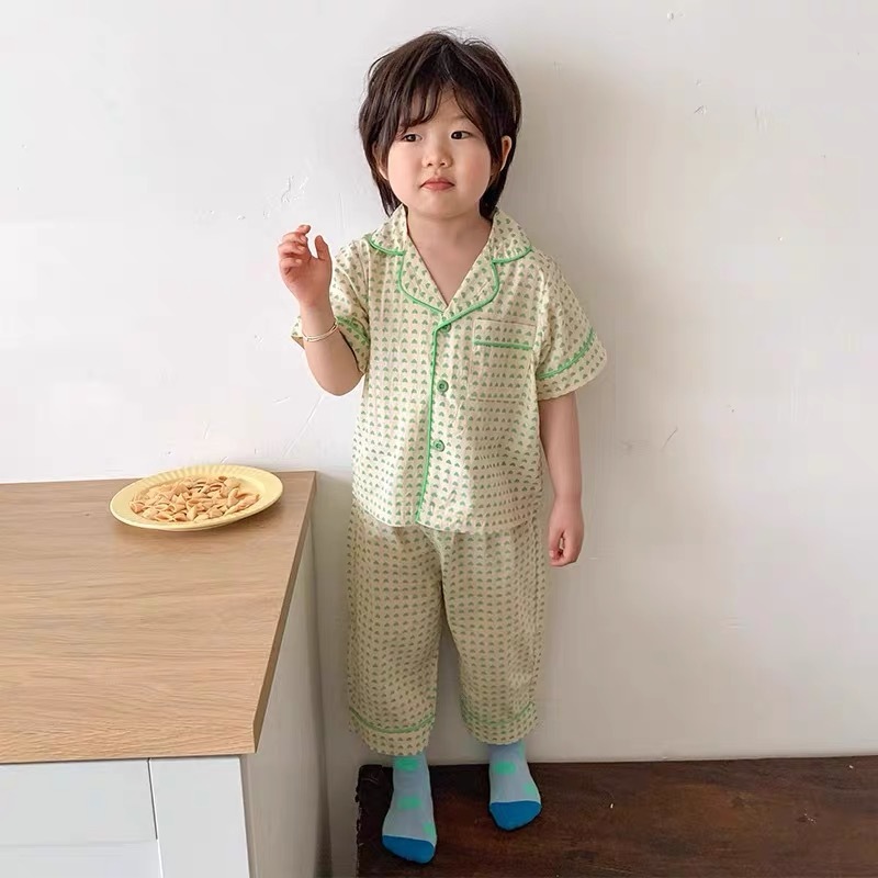 아동 및 여아 잠옷, 패셔너블한 반팔 바지, 여름 남아 가정복, 유아용 반팔 에어컨 슈트, 얇은 스타일