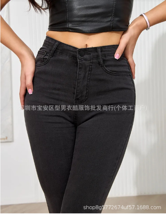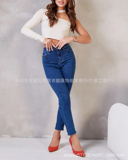 Wish Amazon 인기 청바지 여성 유럽과 미국 스타일의 여성용 스키니 청바지 펜슬 바지 작은 다리 바지 대외 무역스토어 가기