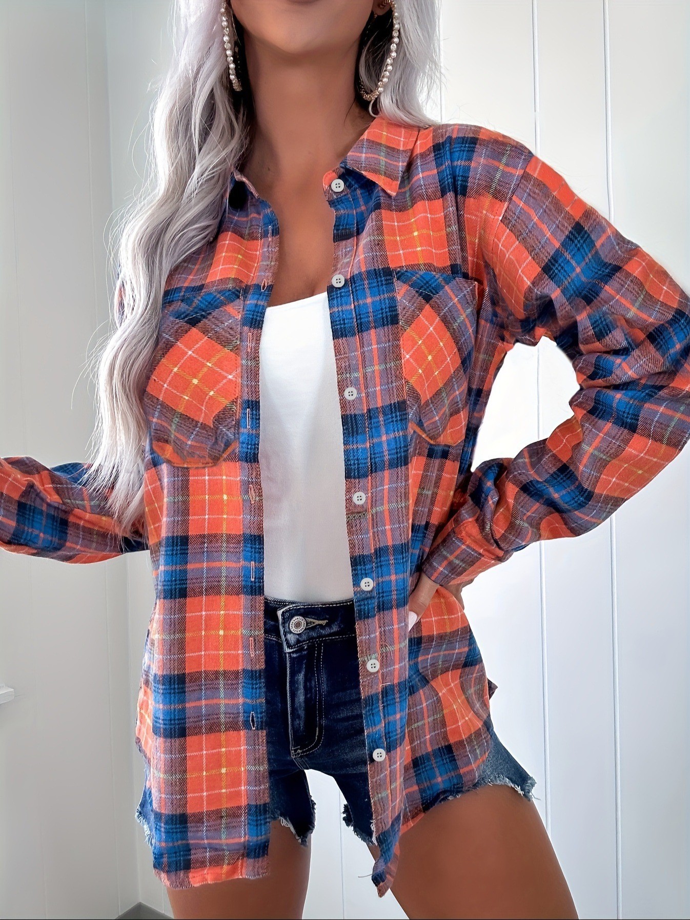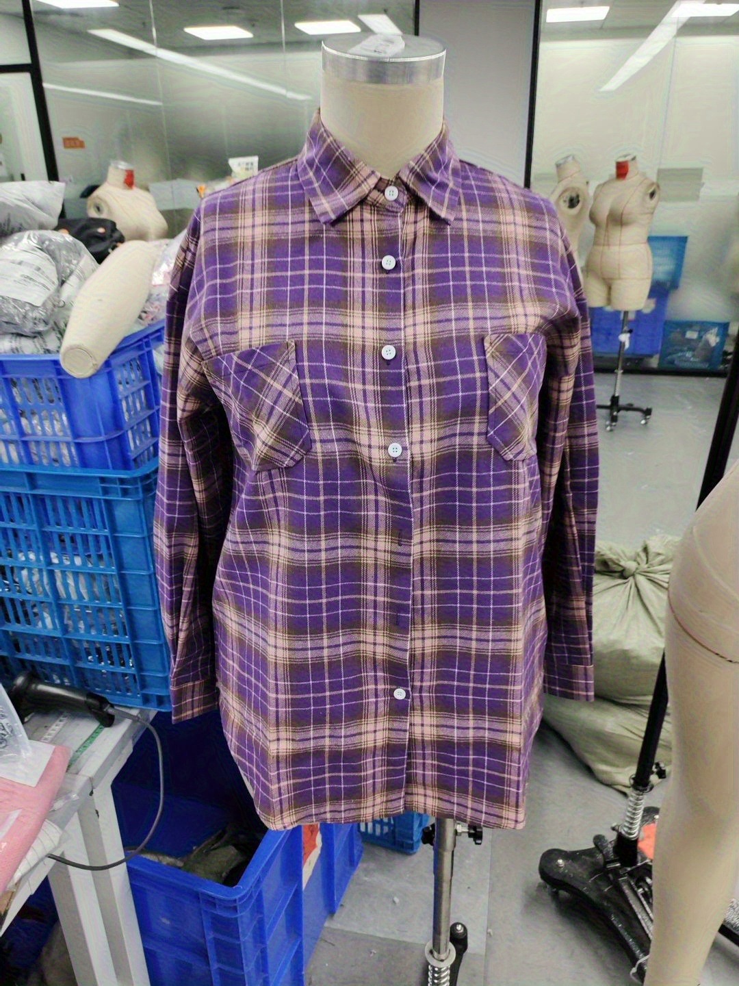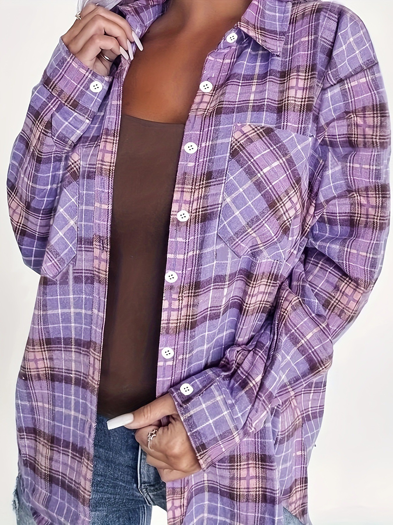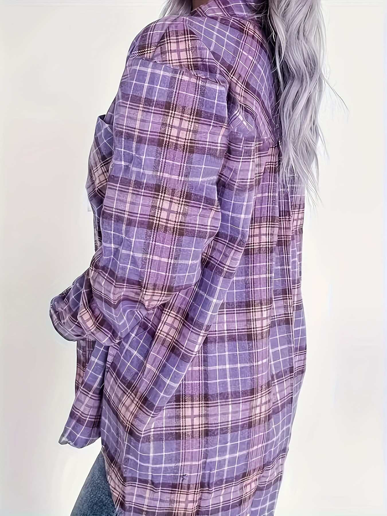 2025 새로운 크로스 보더 봄 기모 느슨한 대형 격자 무늬 셔츠 여성 복고풍 홍콩 스타일 태양 보호 셔츠 긴팔 셔츠스토어 가기