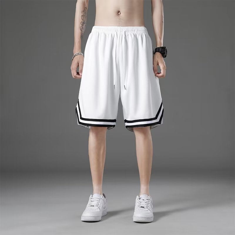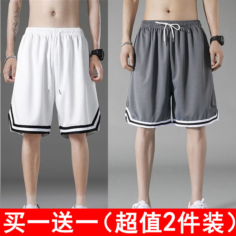 여름 얼음 메쉬 스포츠 반바지 남성용 느슨한 얇은 통기성 속건성 5 점 바지 비치 바지 1/2 개