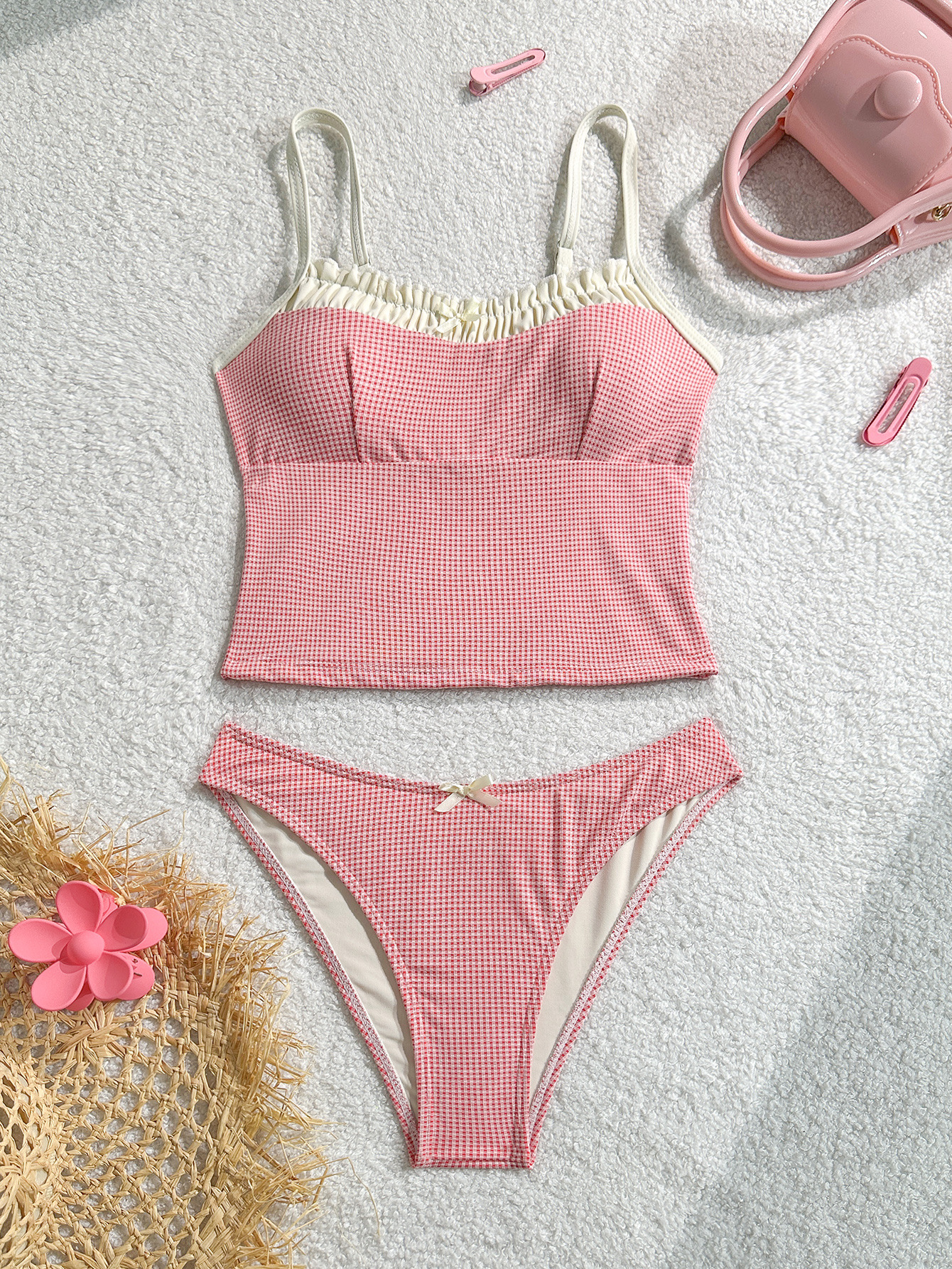 2025 새로운 스타일의 튜브 탑, 꽉 끼는 섹시한 핫 소녀 꽃무늬 휴가 스타일 보우 작은 레이스 백리스 여성 수영복