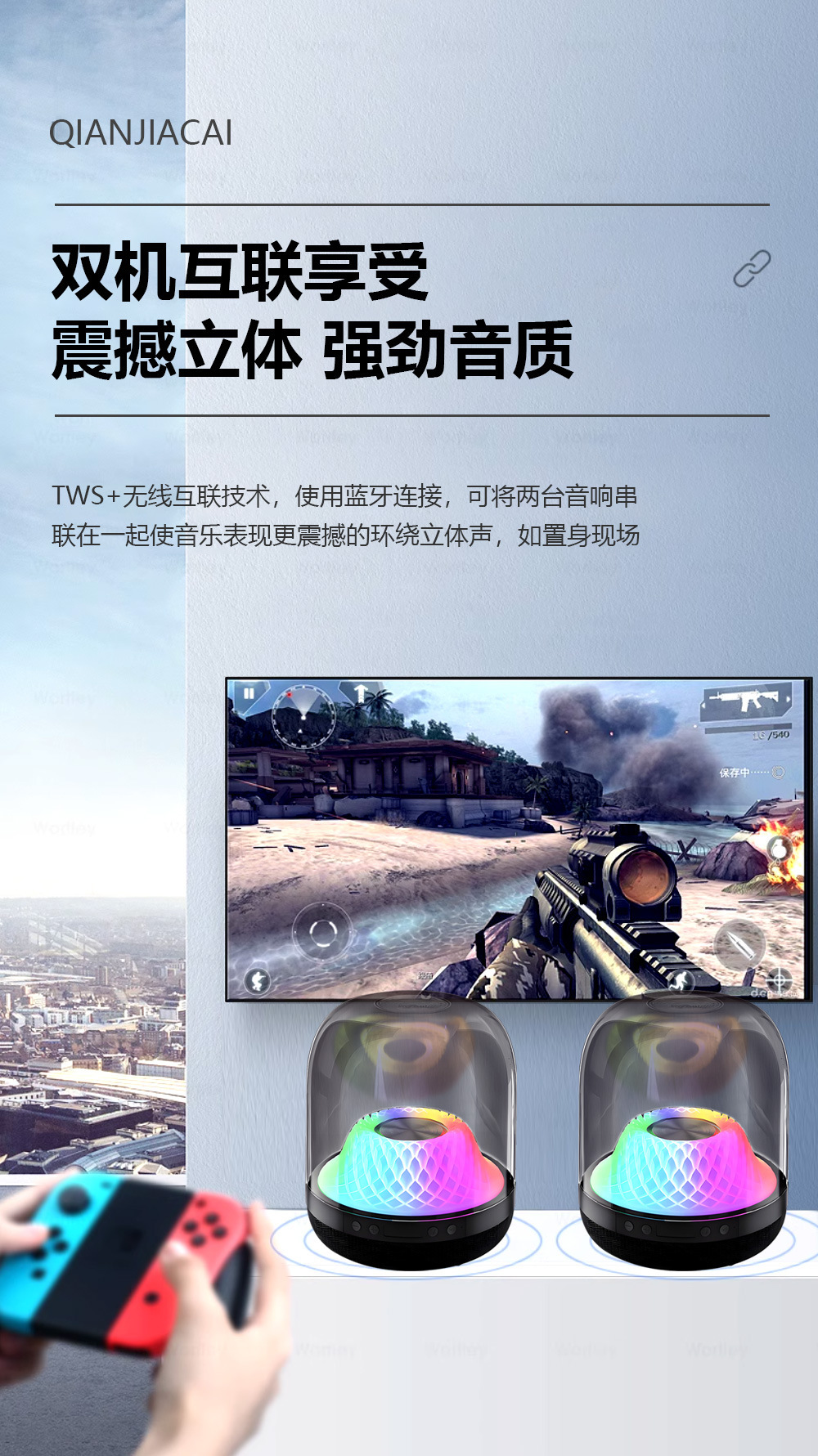 국경 간 인기 LP92 유리 4세대 블루투스 스피커 데스크탑 컴퓨터 서브우퍼 Manha RGB 컬러 라이트 오디오스토어 가기