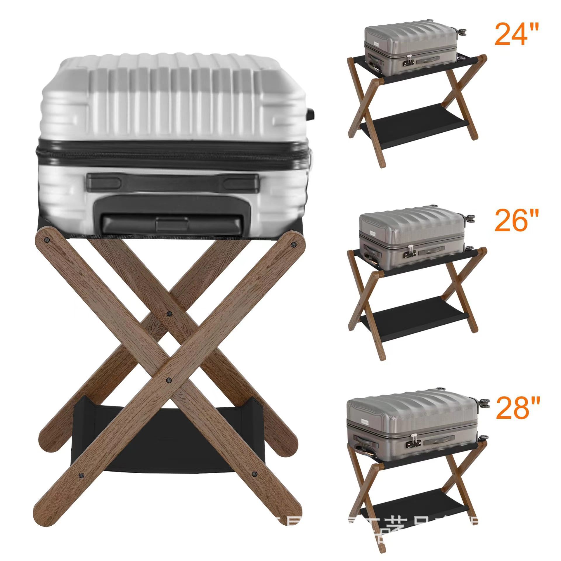 나무 더블 레이어 가방 보관함 호텔 침실 접이식 계층화 된 수하물 신발 랙 바닥 스탠딩 단단한 나무 보관함