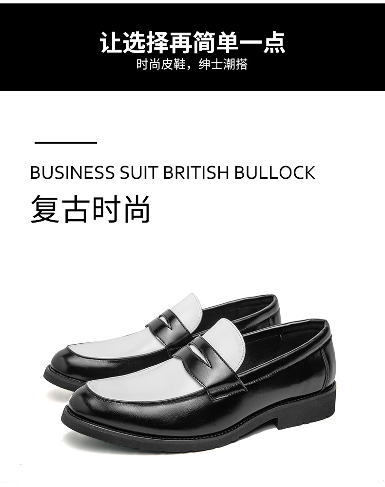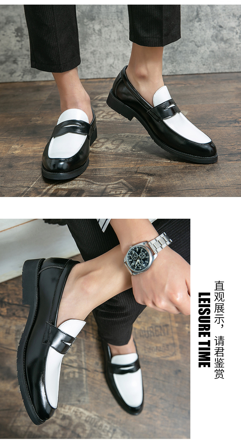 여름 신작 남성 로우탑 오피스 정장 가죽 신발 46 대형 흑백 컬러 블록 가죽 신발 슬립 온 로퍼
