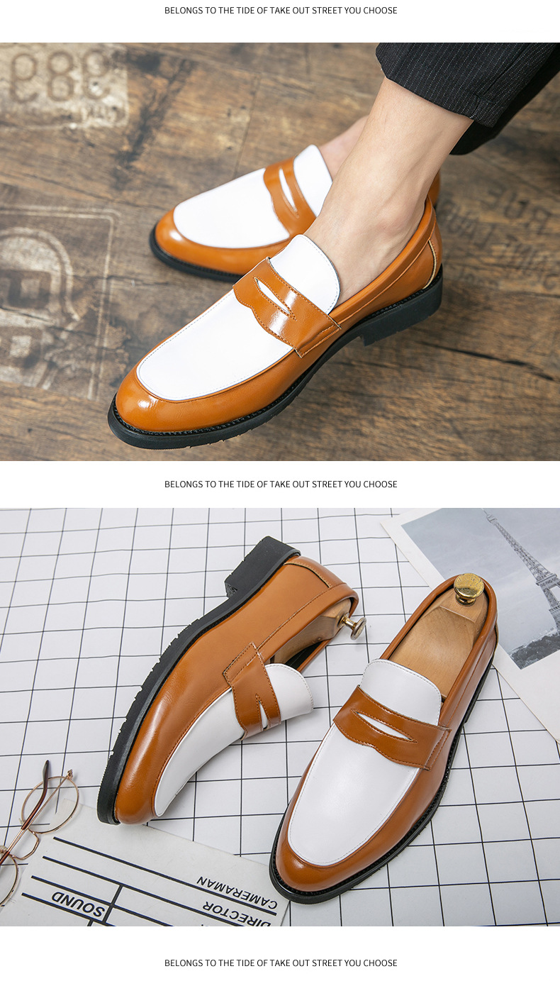 여름 신작 남성 로우탑 오피스 정장 가죽 신발 46 대형 흑백 컬러 블록 가죽 신발 슬립 온 로퍼스토어 가기