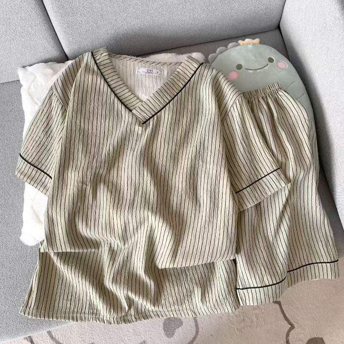 국경 간 대외 무역 남성용 클라우드 코튼 새로운 스타일 v 넥 반팔 반바지 파자마 세트 홈웨어 아우터웨어 패셔너블하고 심플스토어 가기
