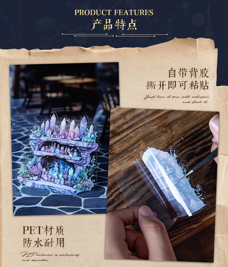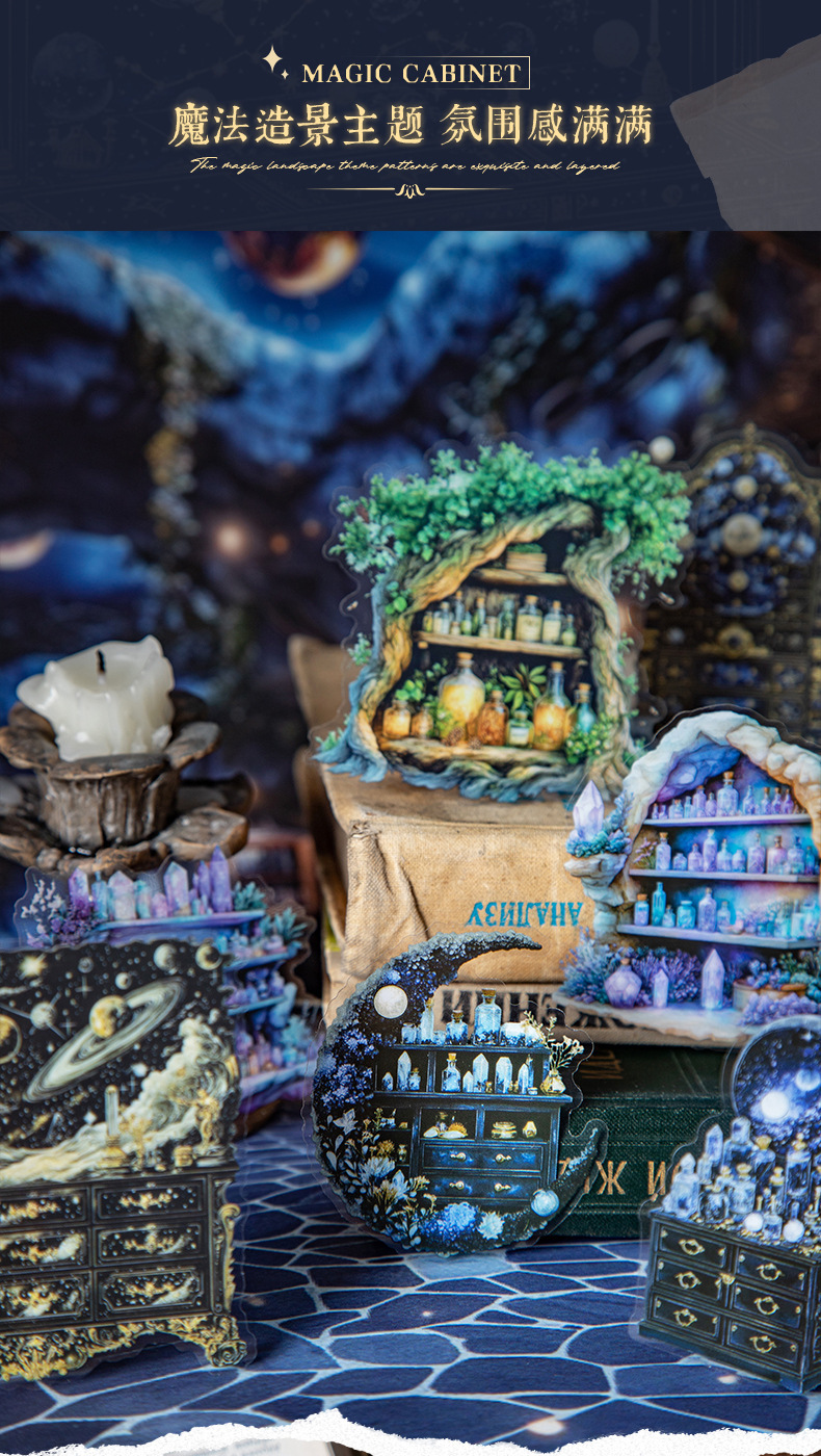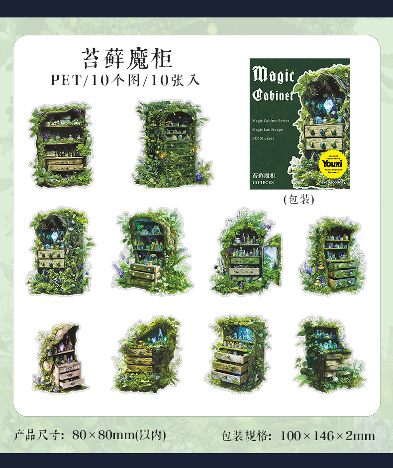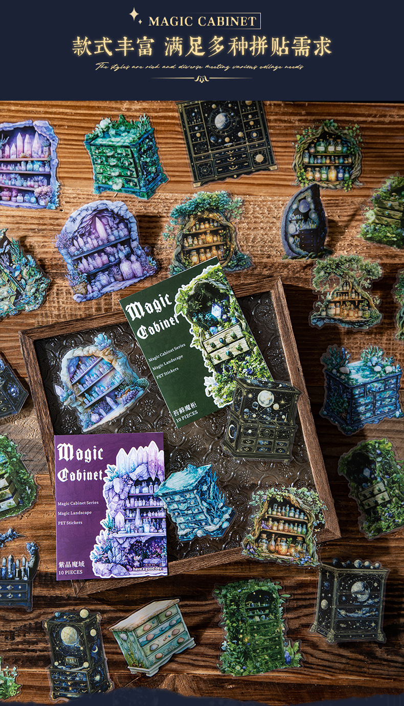 좋은 하루 PET 스티커 마법의 캐비닛 시리즈 복고풍 테마 핸드북 재료 DIY 장식 스티커 조경스토어 가기