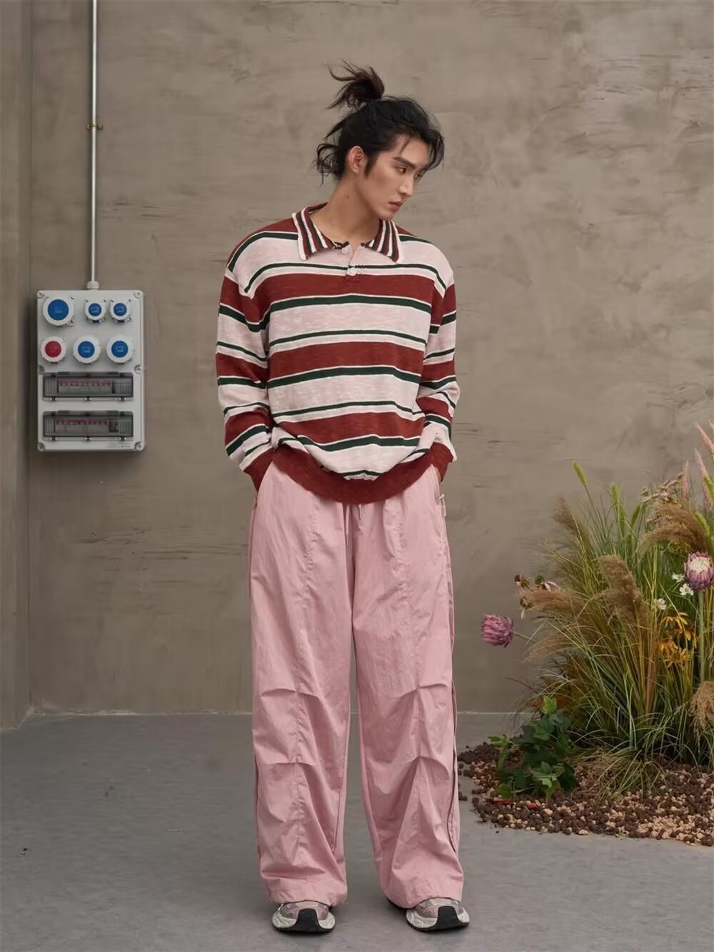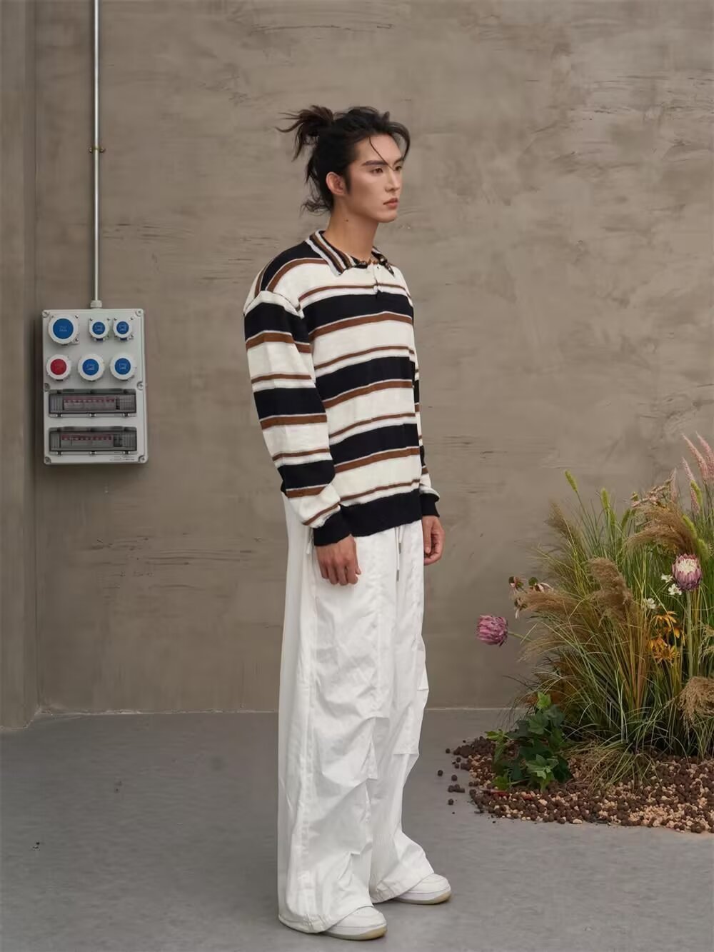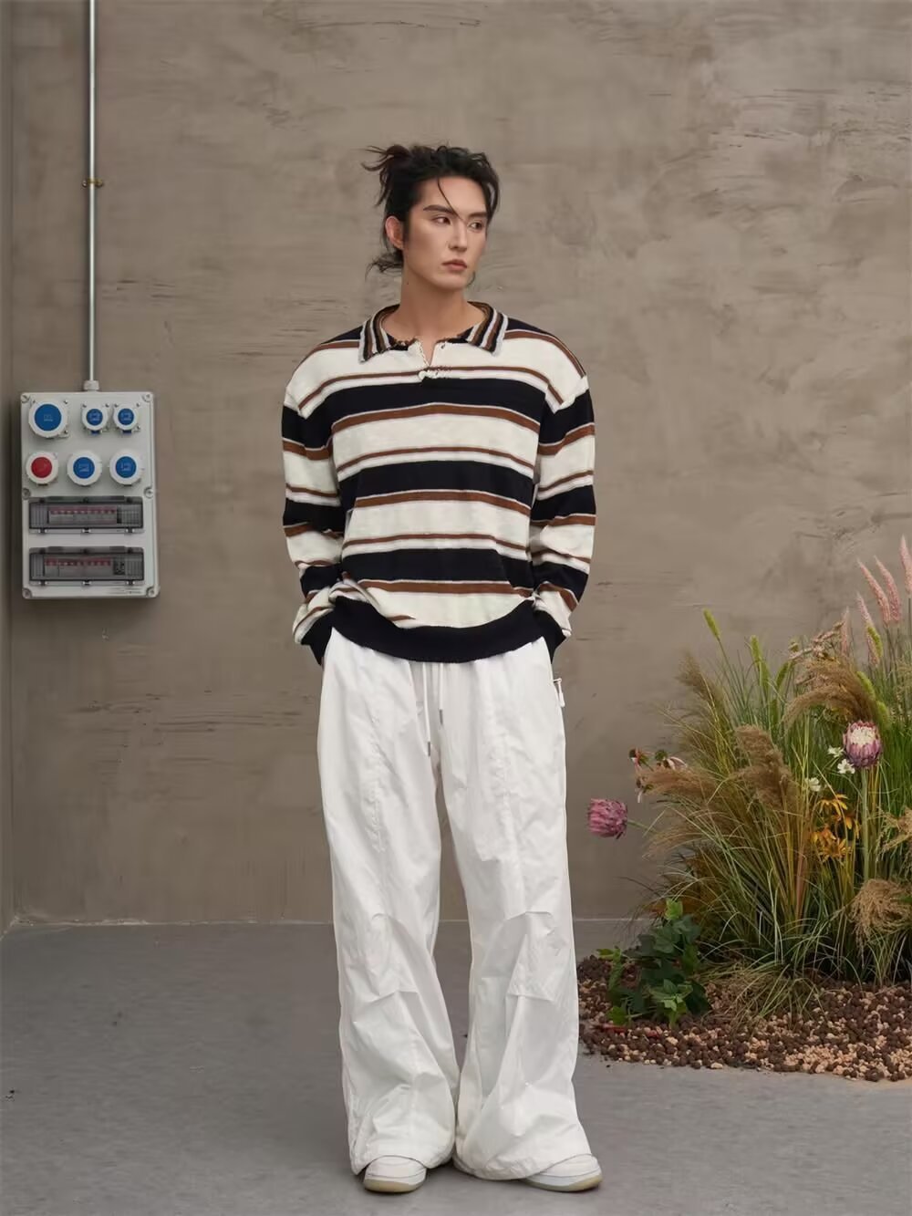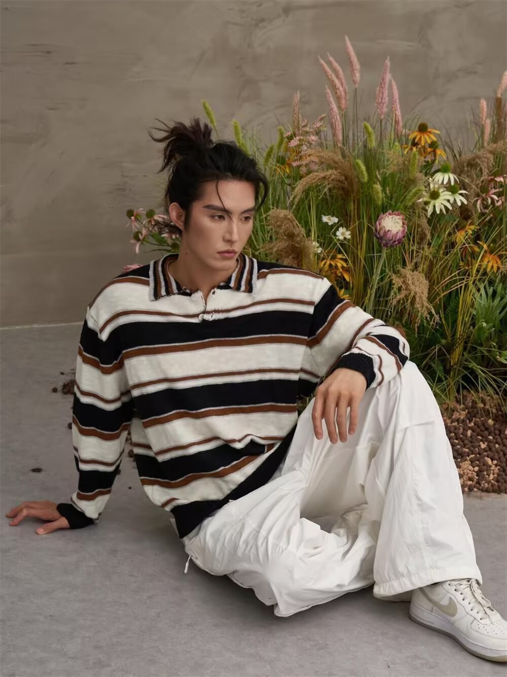 아메리칸 레트로 폴로 셔츠 대비 스트라이프 니트 스웨터 남성 가을, 겨울 트렌디 루즈 레이지 얇은 울 탑