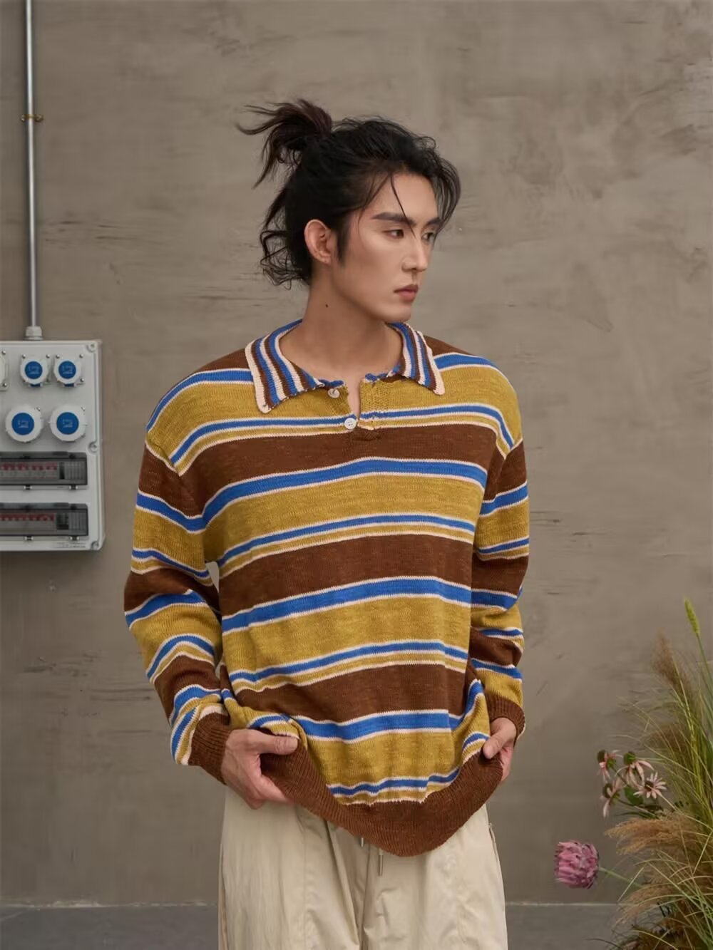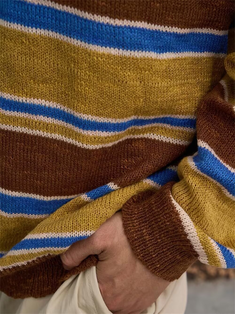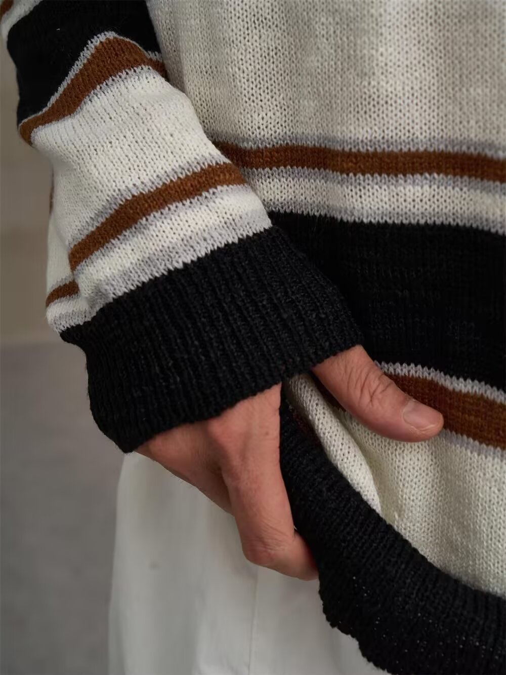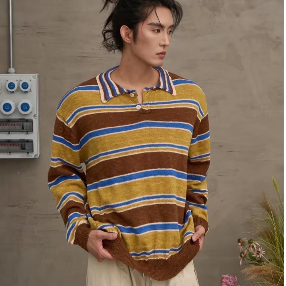 아메리칸 레트로 폴로 셔츠 대비 스트라이프 니트 스웨터 남성 가을, 겨울 트렌디 루즈 레이지 얇은 울 탑스토어 가기