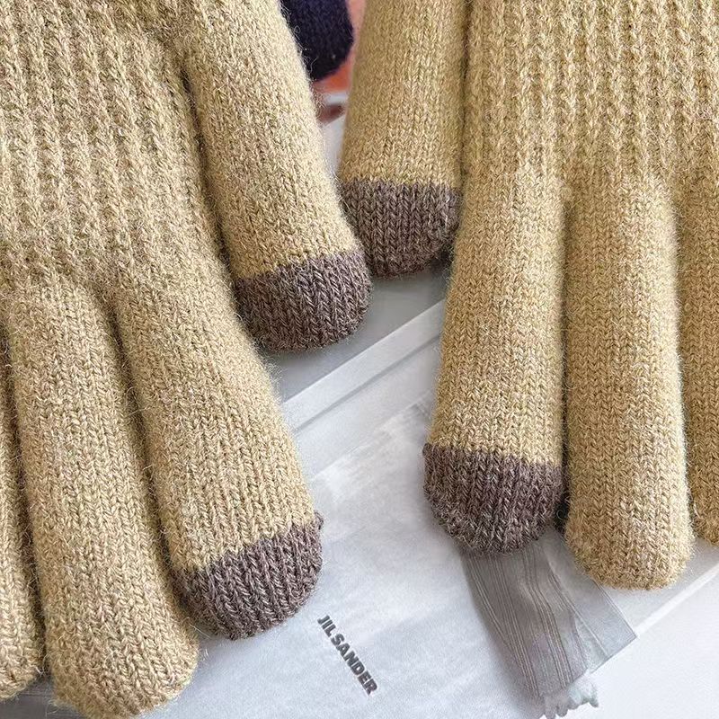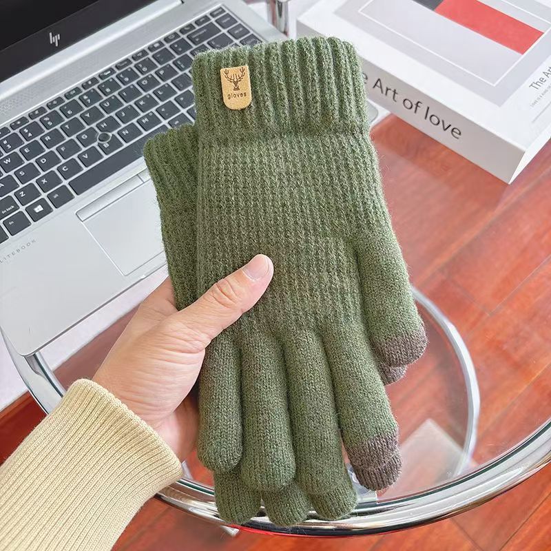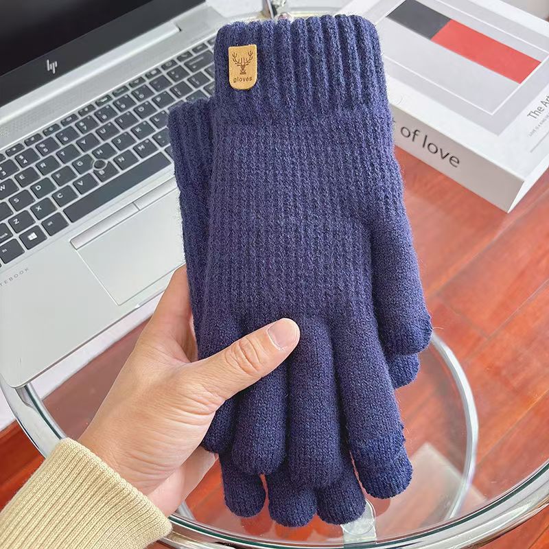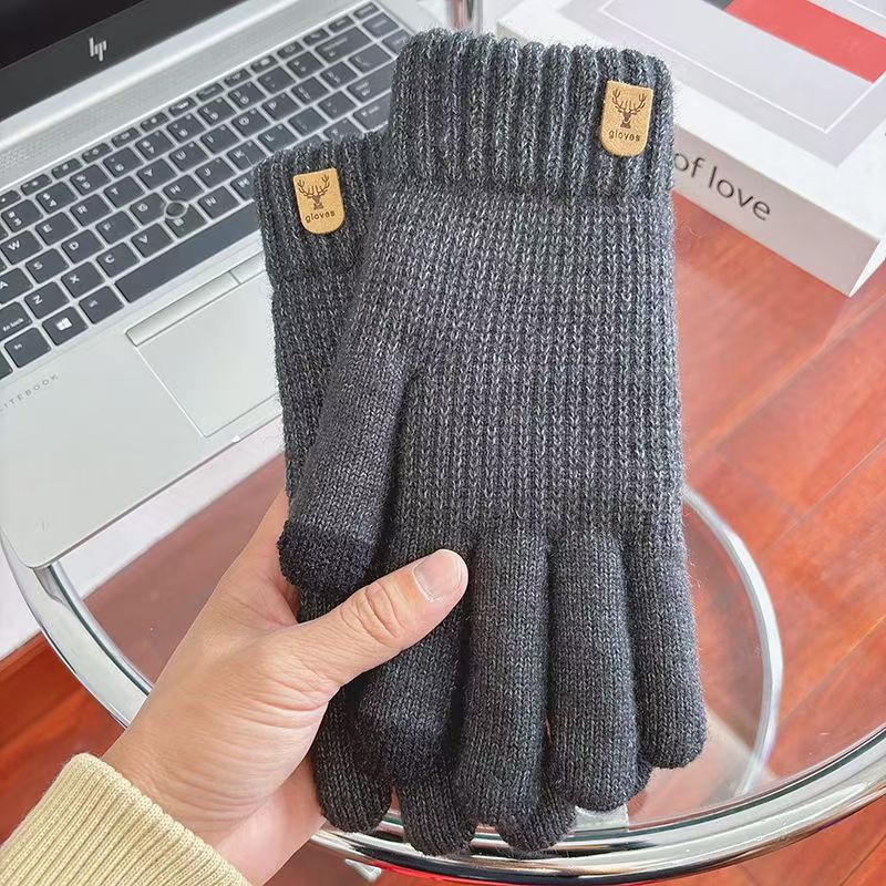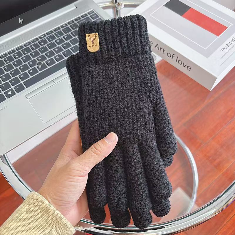 보온 및 방한 기능을 갖춘 새로운 남성용 터치 스크린 장갑, 벨벳 및 두꺼운 모직 니트 핑거 사이클링 다섯 손가락 도매