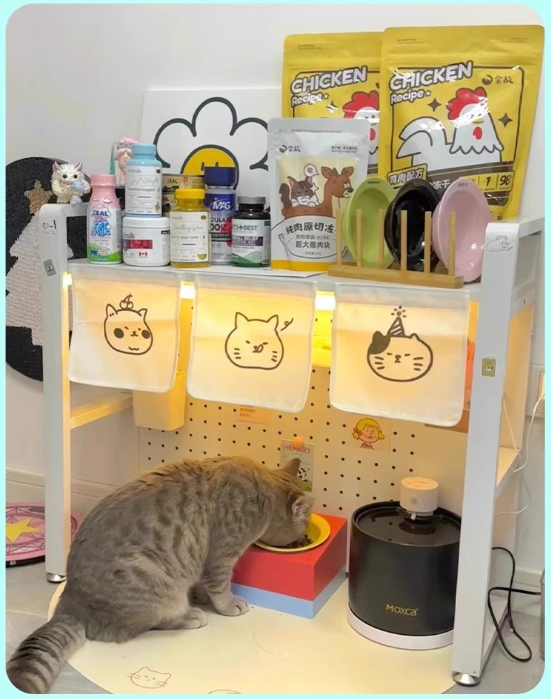 애완동물 고양이 수통 고양이 용품 보관 캐비닛 고양이 레스토랑 고양이 쓰레기통 상단 선반 개 용품 보관스토어 가기
